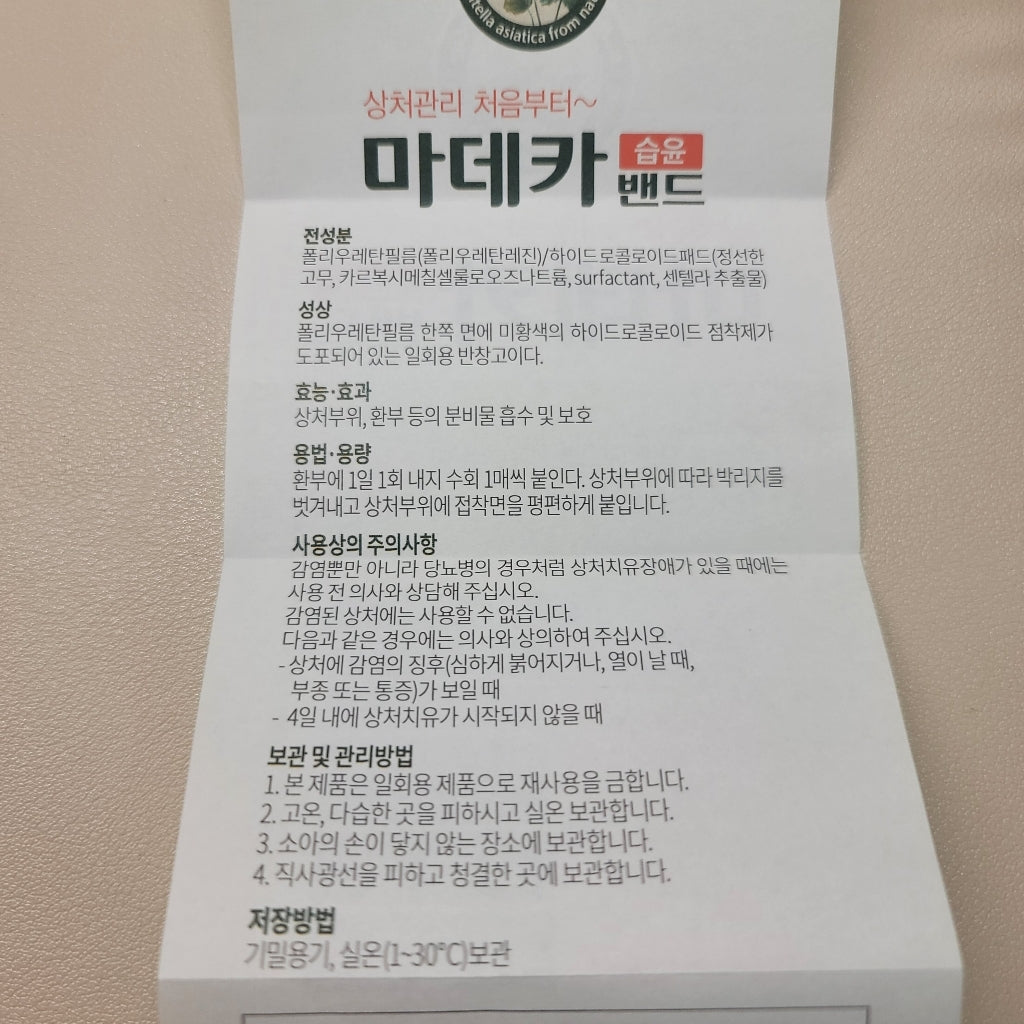 - Material Composition: The bandage is made from a polyurethane film, utilizing a polyurethane resin for durability and flexibility. The hydrocolloid pad contains selected rubber, sodium carboxymethyl cellulose, surfactant, and centella extract, all of which contribute to effective wound healing.