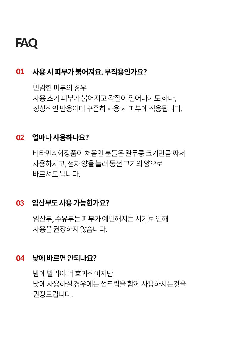 If you are new to vitamin A cosmetics, use a pea-sized amount and gradually increase the amount to apply a coin-sized amount.