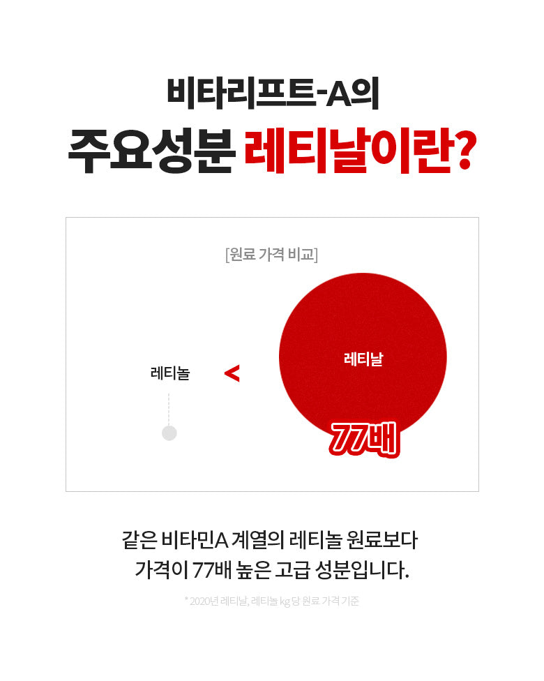 Use of high-quality ingredients that are 77 times more expensive than retinol ingredients of the same vitamin A series