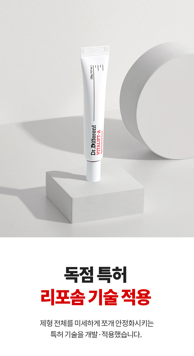 Dr. Different stubbornly contains retinal, which is difficult to obtain, at an effective concentration and uses niosome technology to stabilize the ingredient to further enhance its effectiveness.