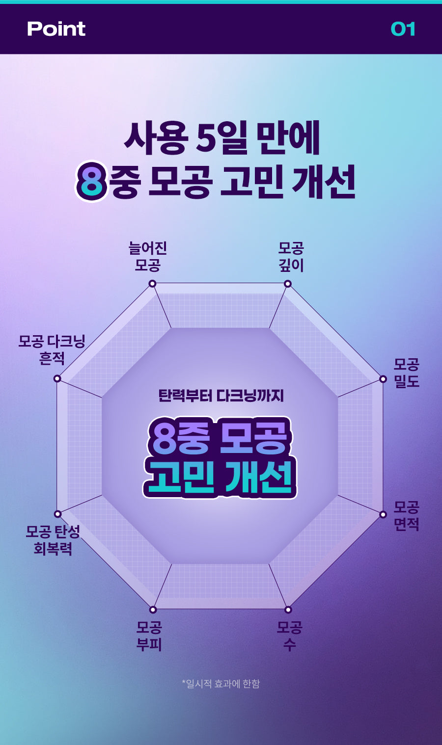 - Point 01: Witness an 8-fold improvement in pore issues within just 5 days, addressing pore size, elasticity, and depth among other concerns.