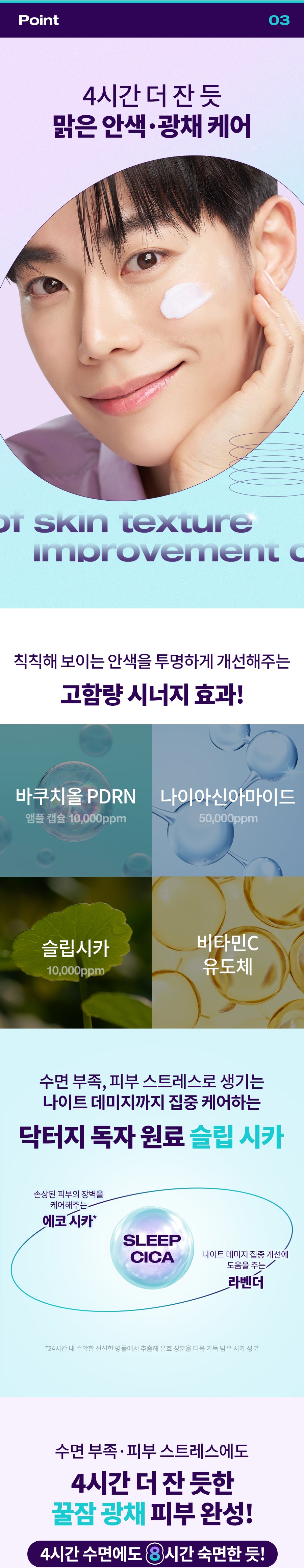 Featuring a potent mix of Bakuchiol PDRN, Niacinamide, Sleepcica, and a Vitamin C derivative, this cream offers intensive care for night-time damage and significantly improves skin barrier and complexion.