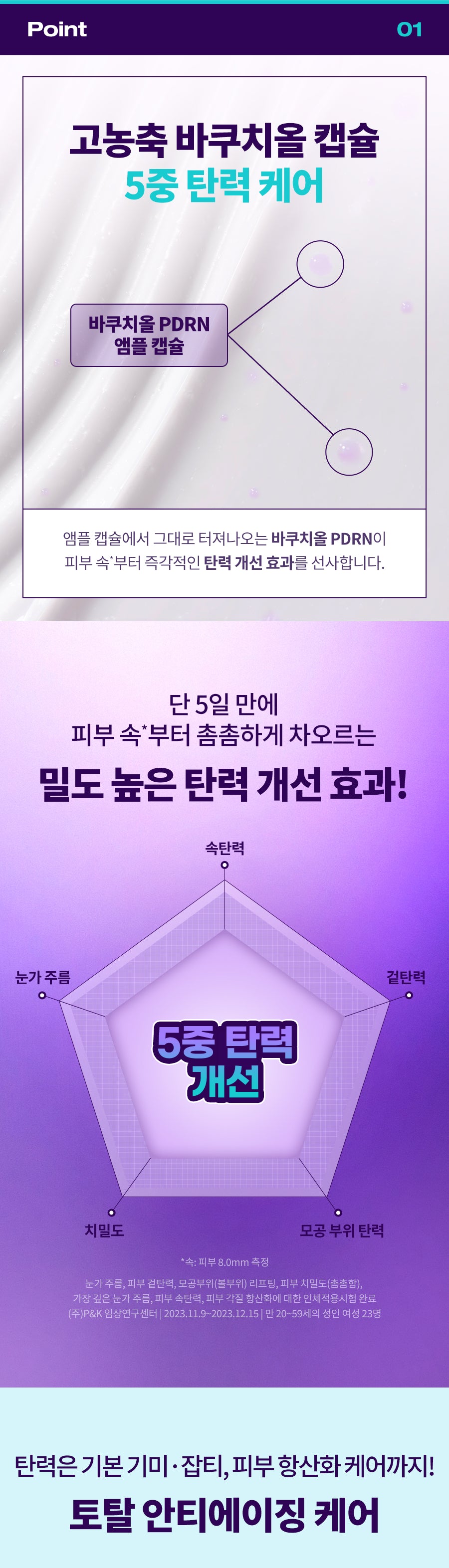 - Highly Concentrated Bakuchiol Capsules: Offers a high-density elasticity improvement visible within just 5 days of use, targeting areas such as inner and outer elasticity, pore area, density, and wrinkles around the eyes.