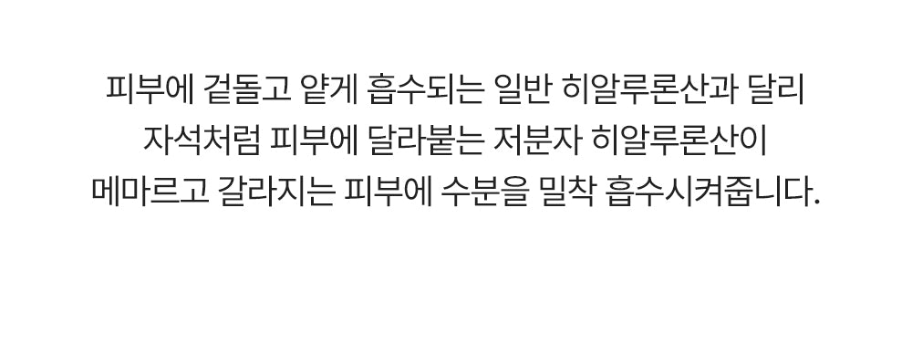Experience long-lasting hydration with just a single drop. This powerful serum is infused with Magnetic Hyaluronic Acid, a low molecular weight form that absorbs deeply into the skin. Unlike traditional hyaluronic acid that sits on the surface, this formula penetrates like a magnet, instantly replenishing and locking in moisture on dry, cracked areas.