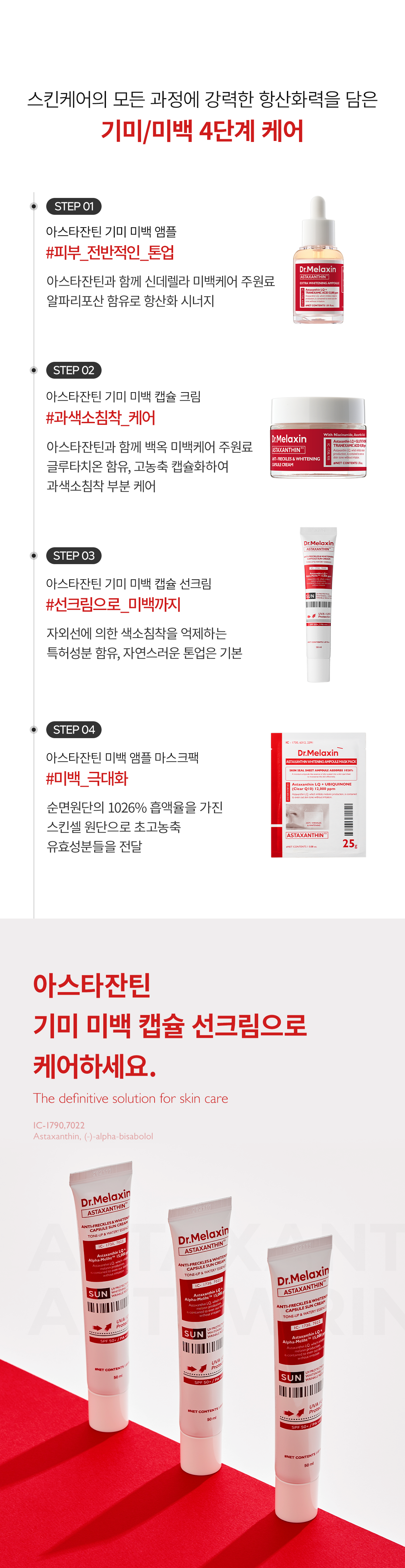 - Astaxanthin blocks melanin production, ensuring deep whitening and targeted care for hyperpigmented freckles and blemishes.