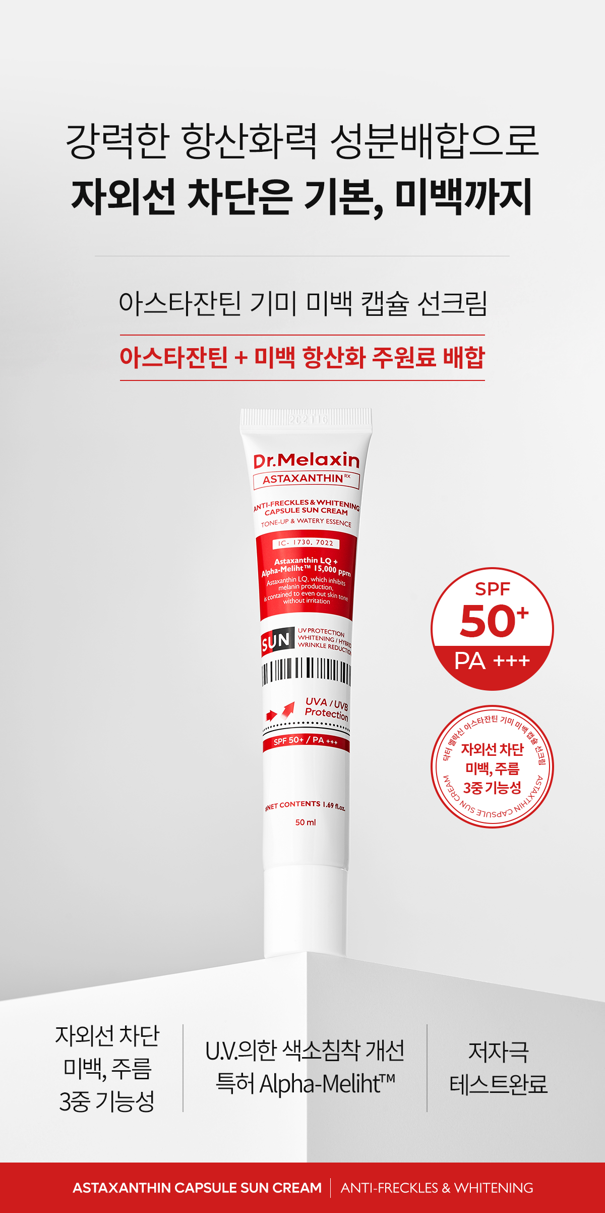 Dr.Melaxin Astaxanthin Anti-Freckles & Whitening Capsule Sun Cream 50ml