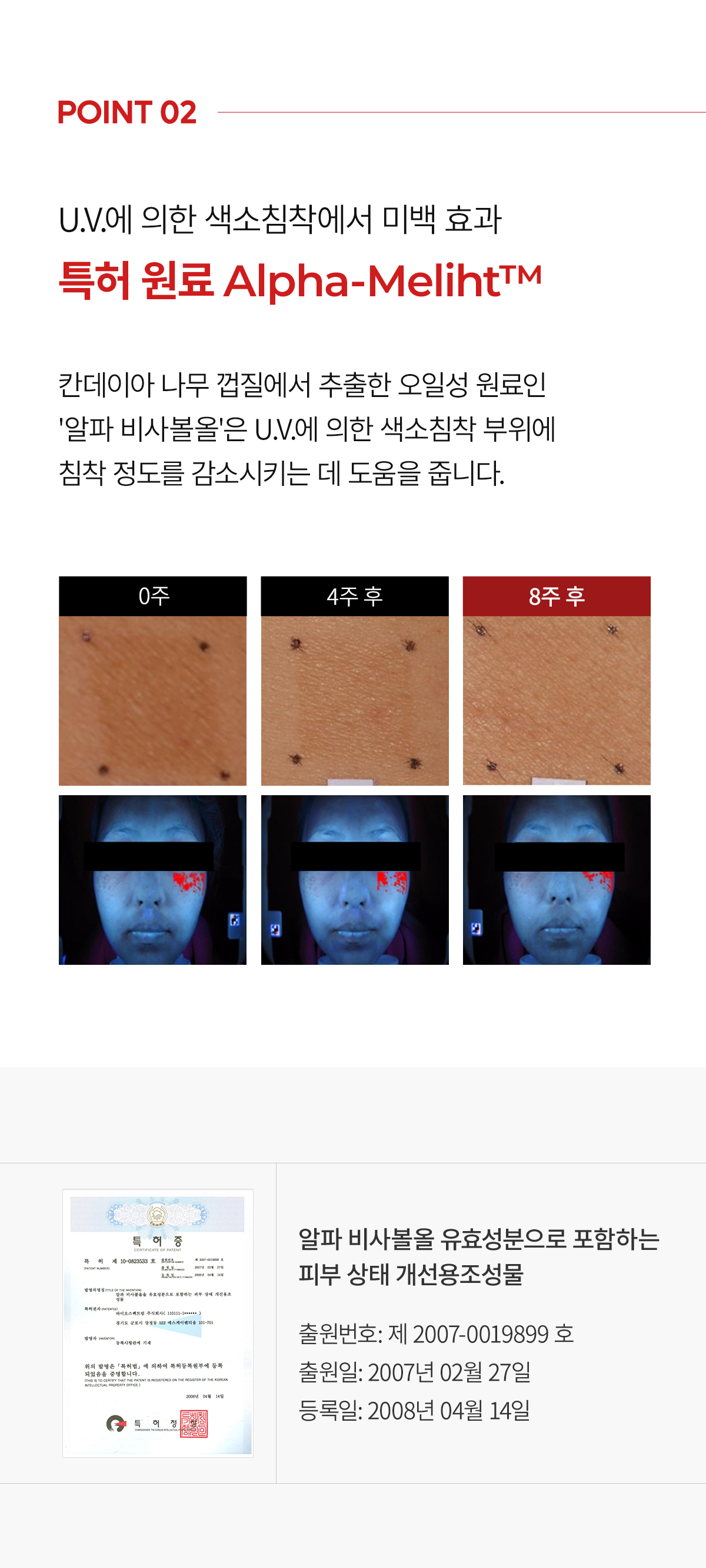 - Contains patented Alpha-Meliht™ (Patent No. 2007-0019899), which reduces pigmentation caused by UV exposure.
