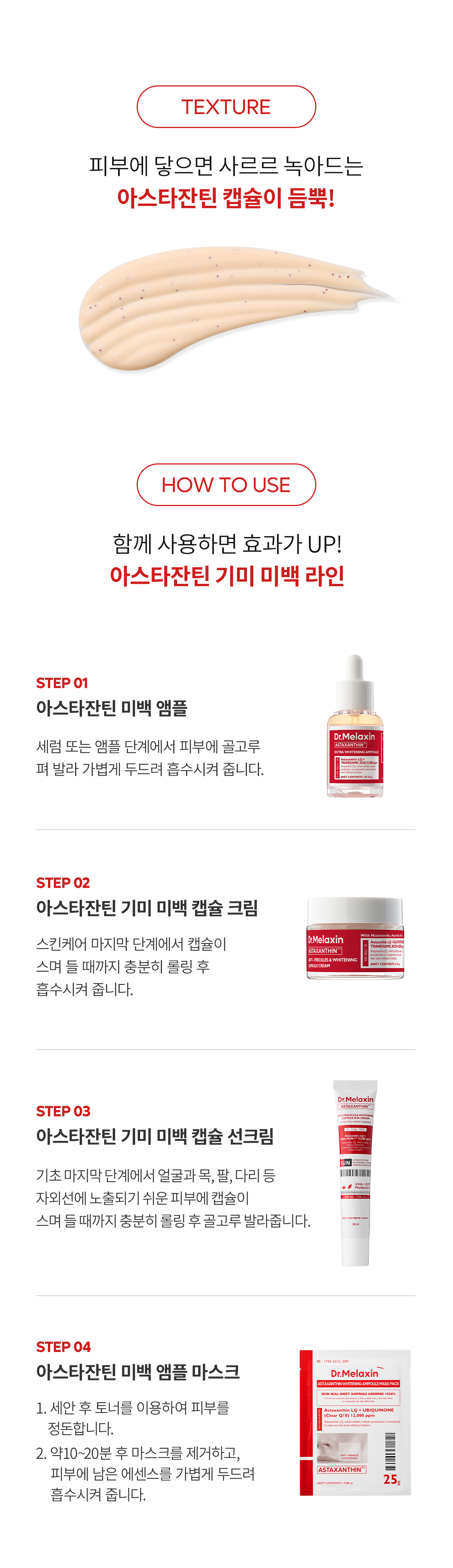- Astaxanthin blocks melanin production, ensuring deep whitening and targeted care for hyperpigmented freckles and blemishes.