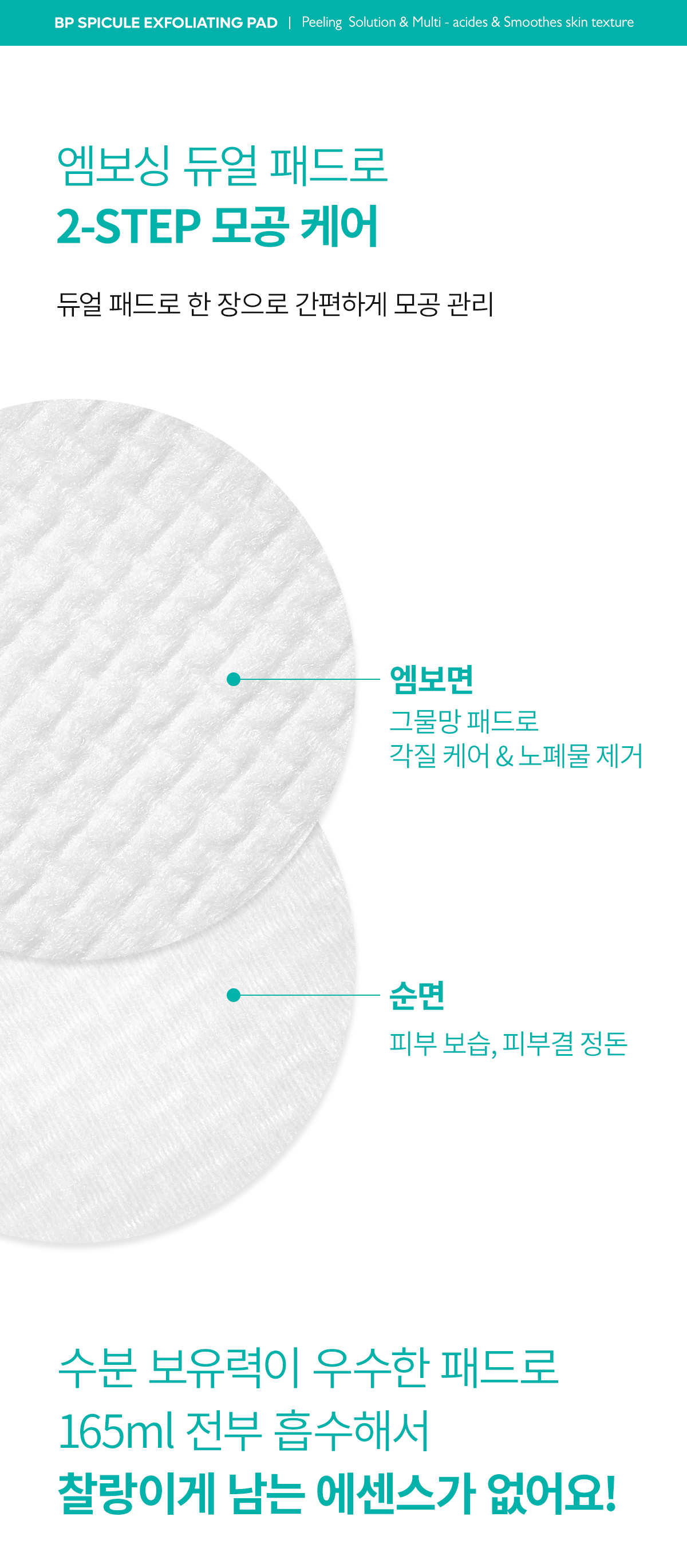 - Bio-Spicules are embedded in a mesh pad for a non-irritating exfoliation process that removes dead skin cells and smooths skin texture.