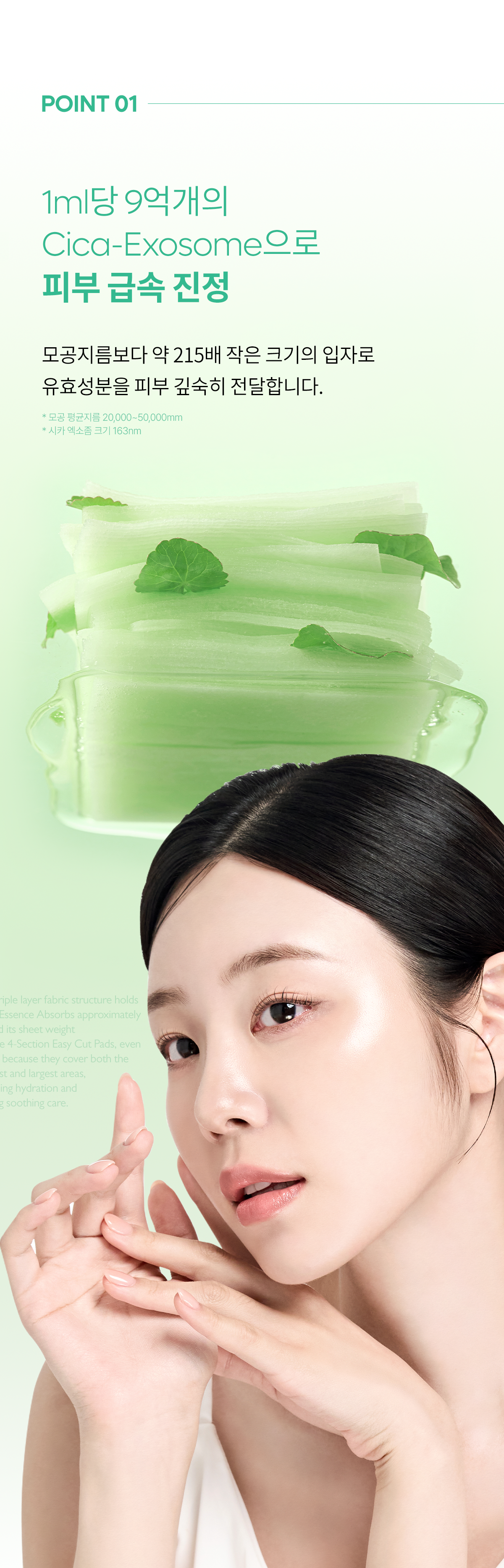 - Powered by Cica-Exosome, this pad delivers active ingredients deep into the skin. Its particles are approximately 215 times smaller than pore diameters, ensuring enhanced absorption and efficacy.