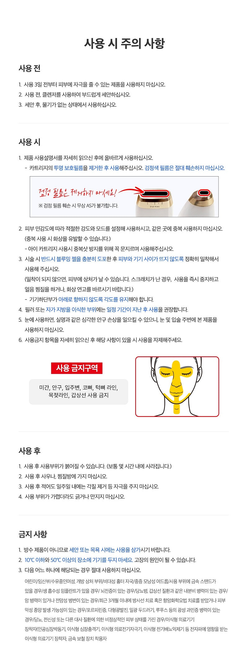 - For users with fillers or fat grafts, allow a sufficient period before use.