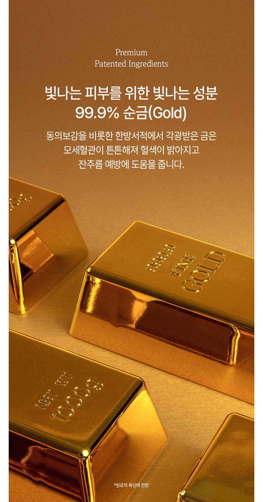 - Pure gold enhances capillary strength, brightens the complexion, and helps prevent fine wrinkles.