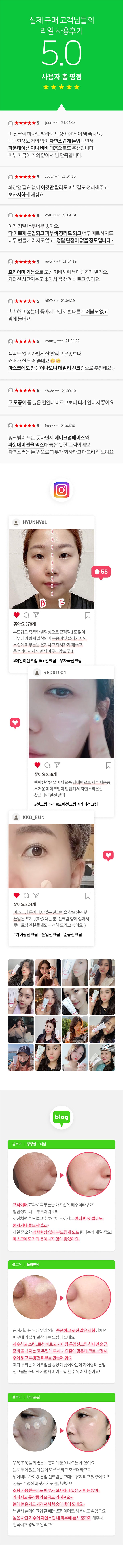 This sunscreen covers pores perfectly due to its primer function, so it applies smoothly. It’s moist, and the ingredients are excellent, causing no skin troubles. I really like it.