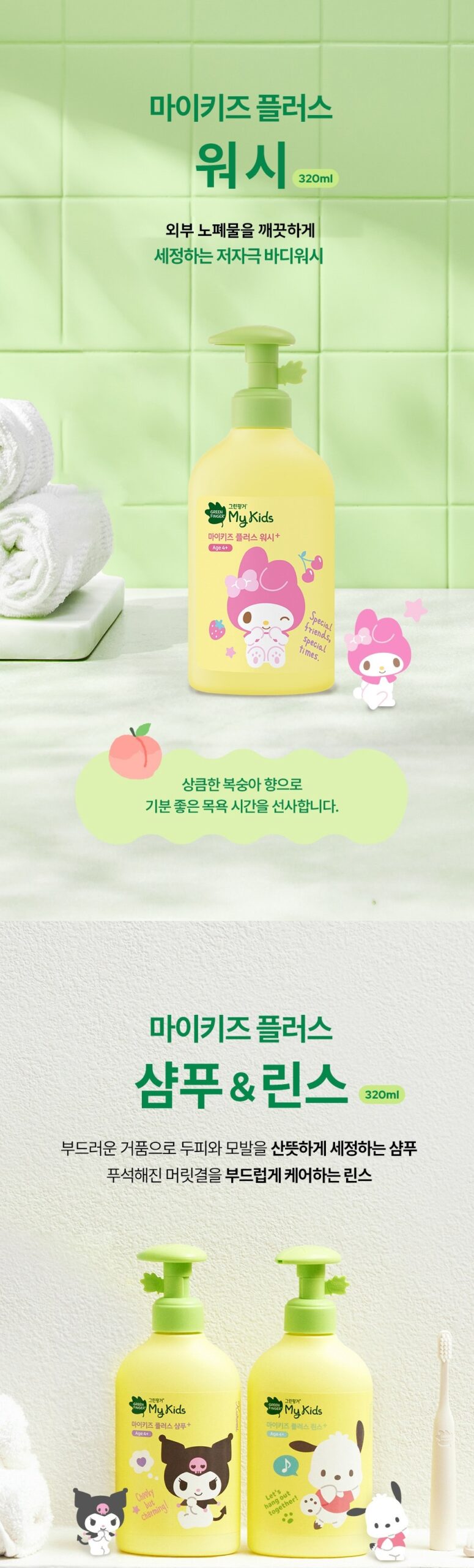 My Kids Plus Body Wash (320ml): Gentle, low-irritation body wash with a refreshing peach scent.