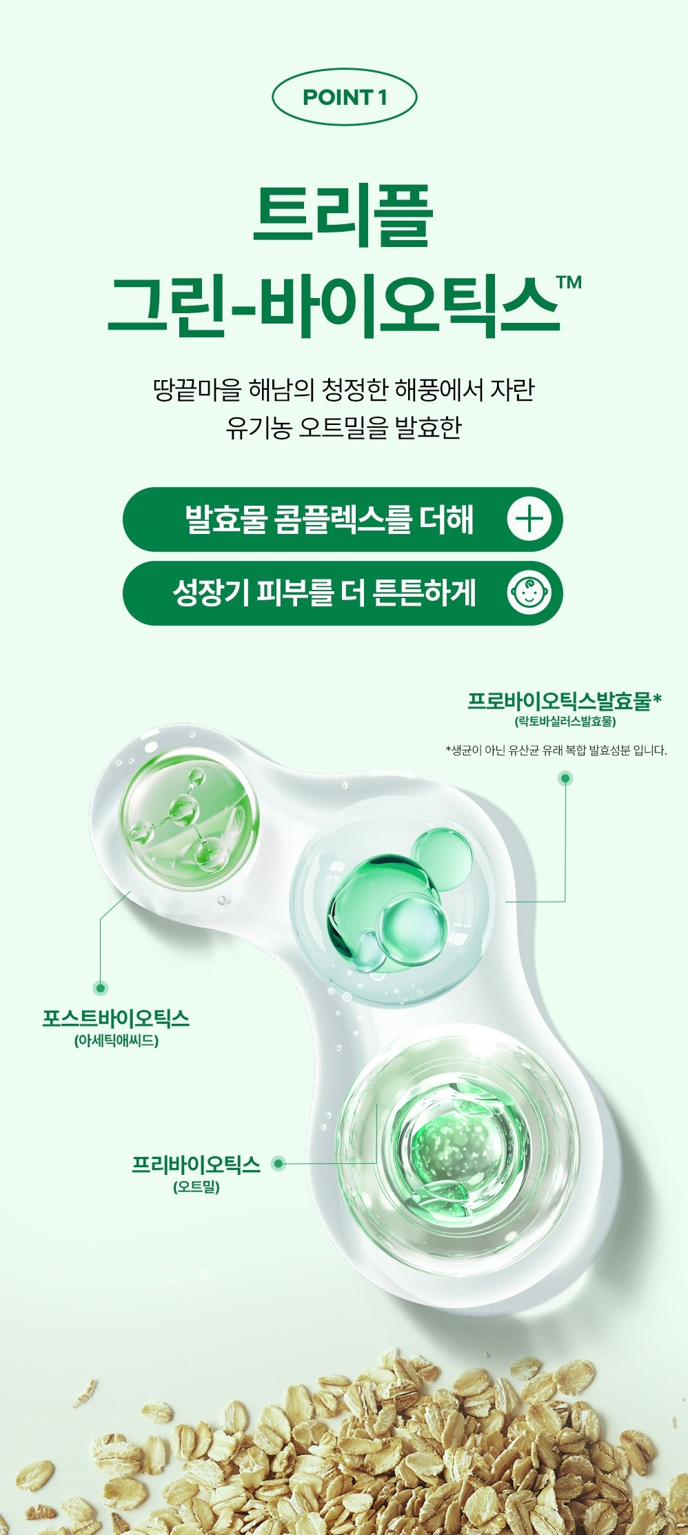Probiotics Ferment (Lactobacillus Ferment): A skin-friendly complex derived from fermented organic oatmeal from clean sea-breeze regions in Haenam, Korea.