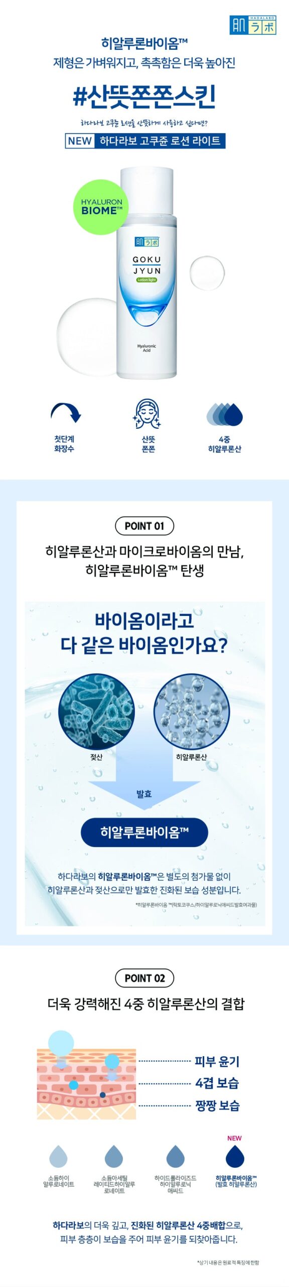 HADA LABO – Gokujyun Hyaluronic Acid Lotion Light offers exceptional moisturization through its unique blend of three types of hyaluronic acid. This advanced formula is enhanced with the innovative ‘Hyaluron Biome™’, providing a barrier care that takes moisturization to a new level. The lotion is designed for quick absorption, leaving a refreshing sensation on the skin.