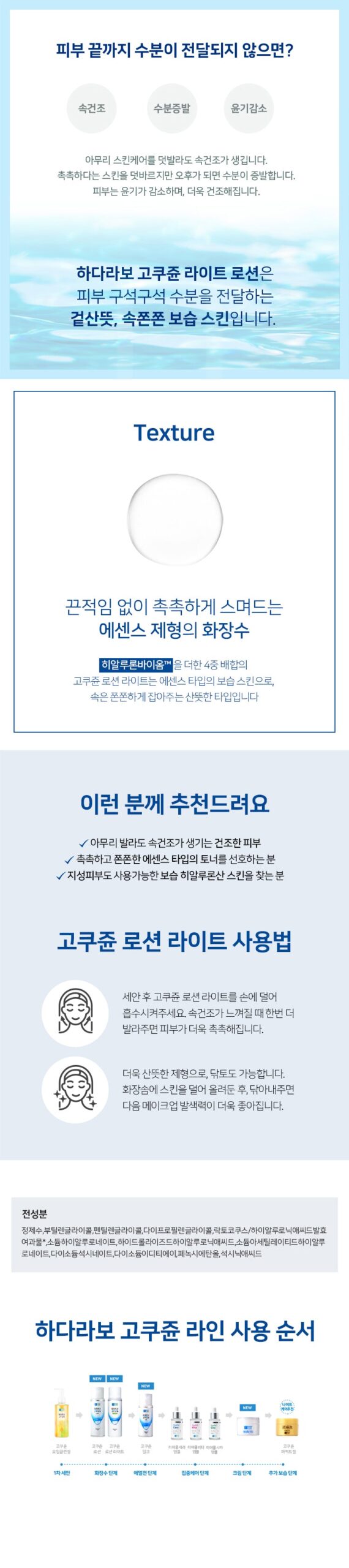 Apply Gokujun Lotion Light after washing your face. Dispense onto your hands and gently pat for absorption. Reapply as needed for enhanced moisture. The lotion can also be used with a cotton pad for a refreshing toning effect and to prepare the skin for better makeup application.
