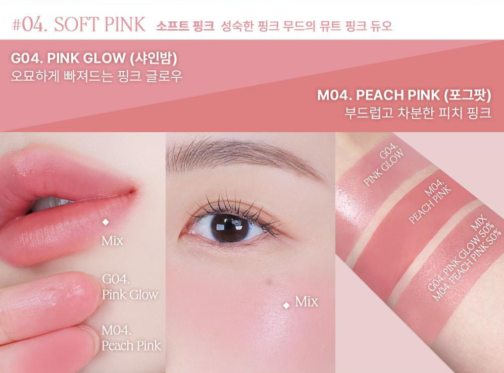 I recently tried the Heart Percent Dot On Mood Custom Lip & Cheek and was thoroughly impressed by its versatility. With 14 shades and both GLOW and MATTE textures, it allowed me to play with different looks effortlessly. I particularly loved how easy it is to apply on my cheeks for a natural flush or on my lips for a pop of color. The blendability is outstanding; it feels lightweight yet provides great pigmentation without being overpowering.