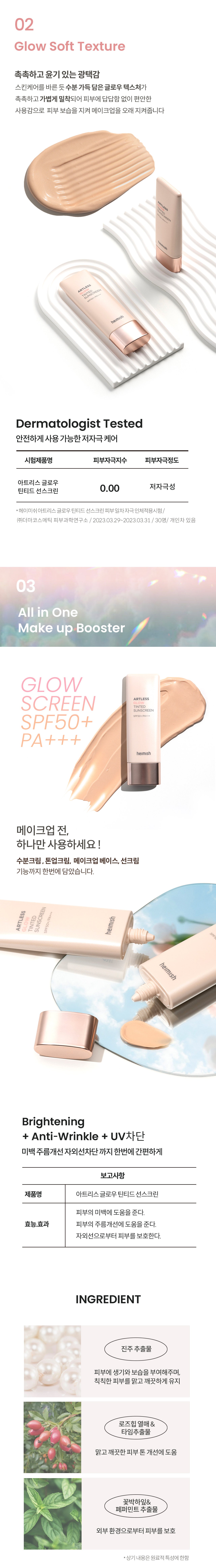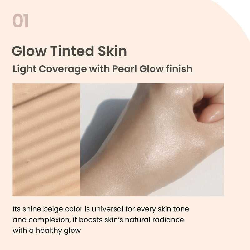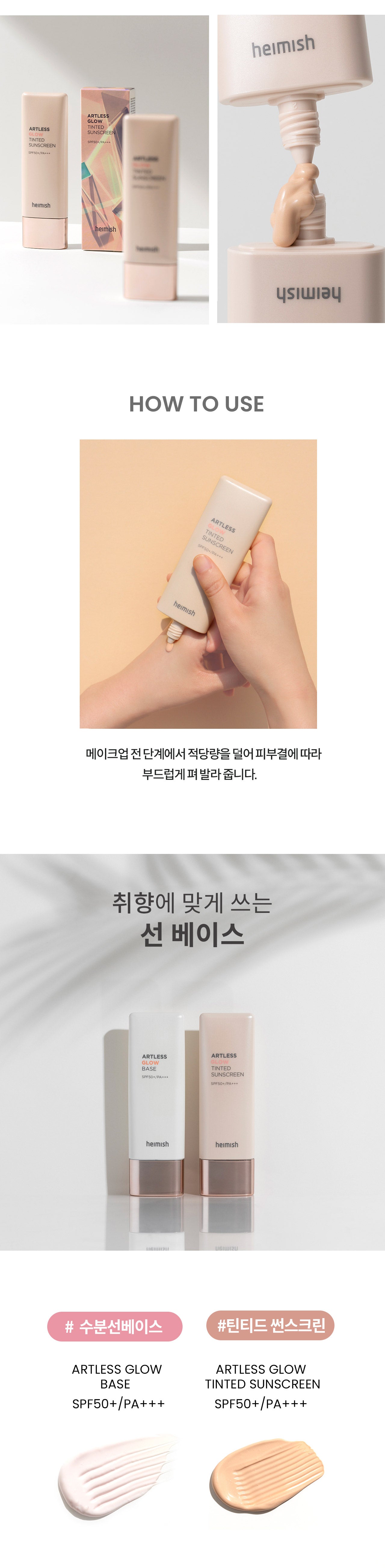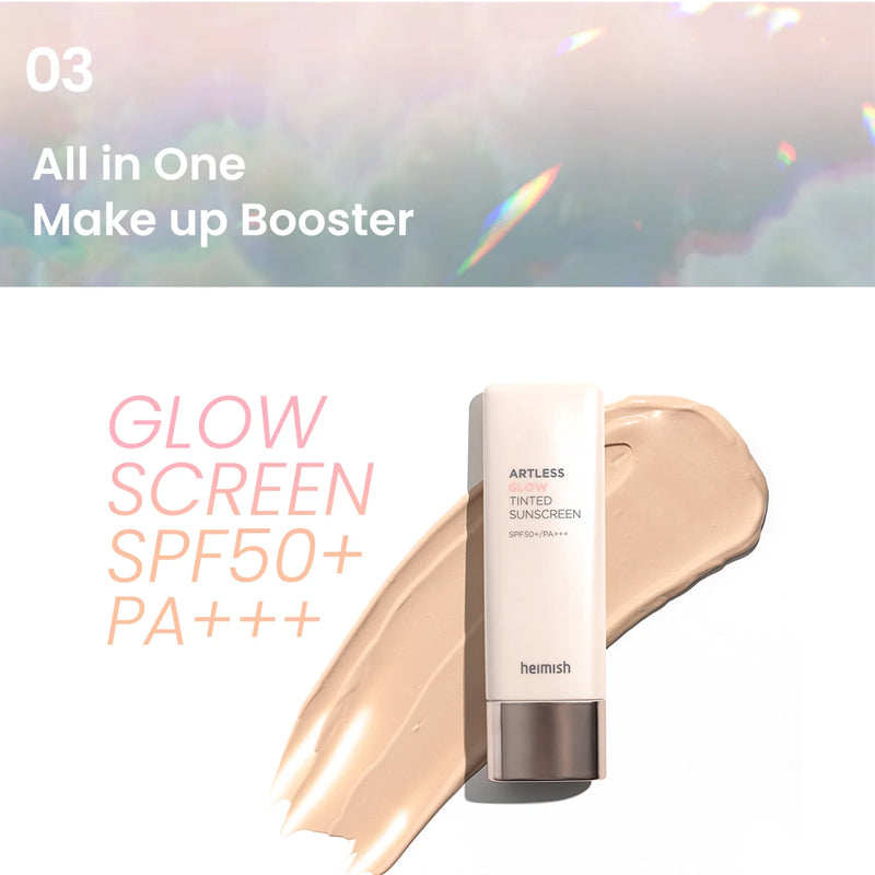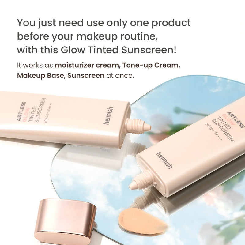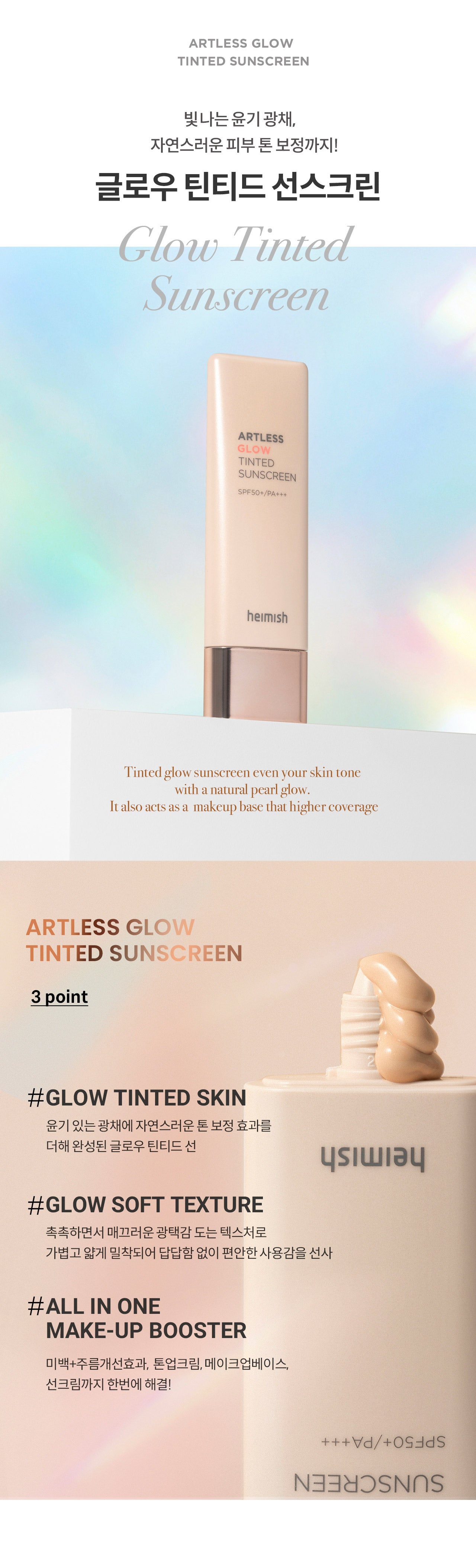 Introducing the heimish Artless Glow Tinted Sunscreen Shine Beige SPF 50+ PA+++! This innovative formula not only offers powerful sun protection but also delivers a radiant glow and natural tone correction for a flawless complexion.