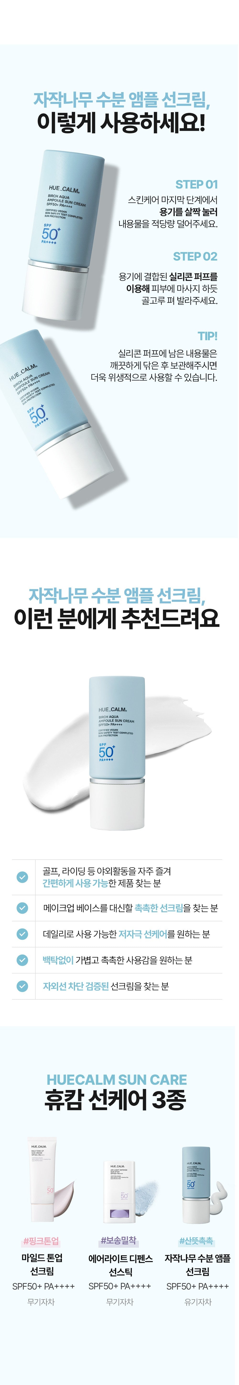16 reviews for HUE_CALM Birch Aqua Ampoule Sun Cream SPF50+ PA++++ 50ml