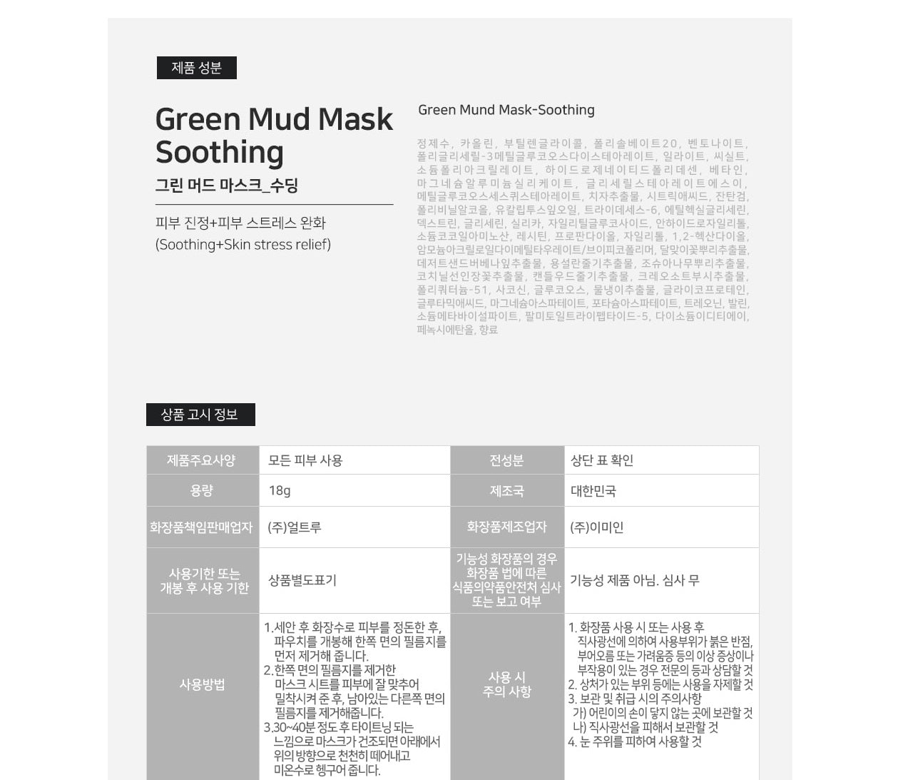 - AMF (Artificial Moisturizing Factor): A patented moisturizer (Patent Application No. 10-2014-0058013) that locks in moisture for 120 hours. Verified by IPS|, it offers strong moisture absorption, binding, and significantly reduces the rate of moisture evaporation.