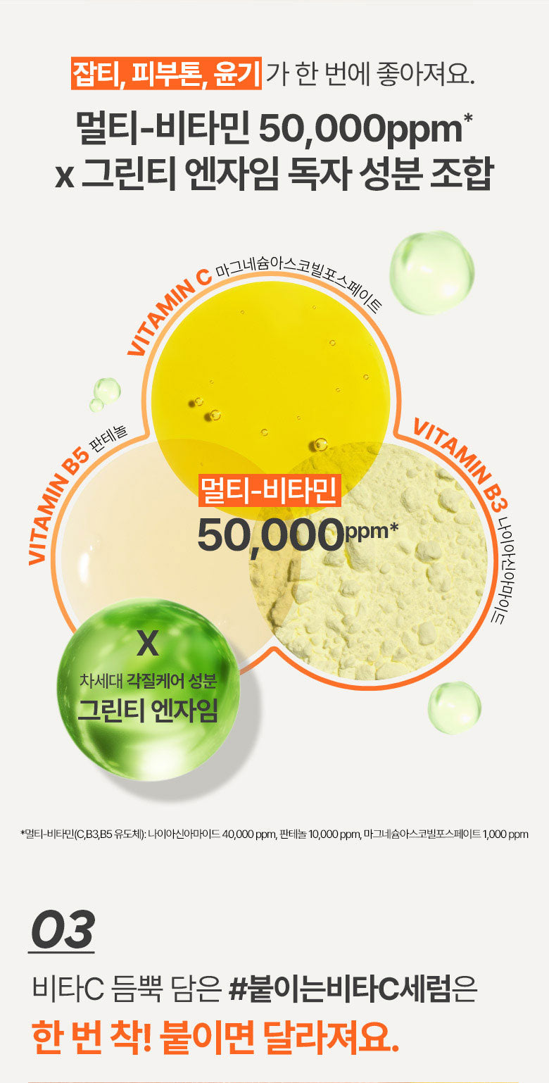 - Multi Vitamins Complex: Formulated with 50,000PPM of a multi vitamins complex (Magnesium Ascorbyl Phosphate, Panthenol, Niacinamide) combined with Green Tea Enzyme to replenish skin vitality and address hyperpigmentation, uneven skin tone, and texture.