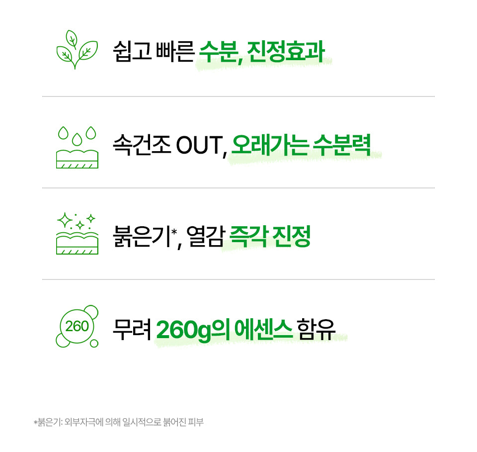 - Essence Quantity: 260g per container, packed with moisturizing and soothing ingredients.