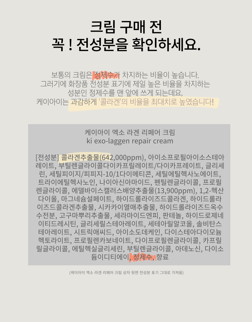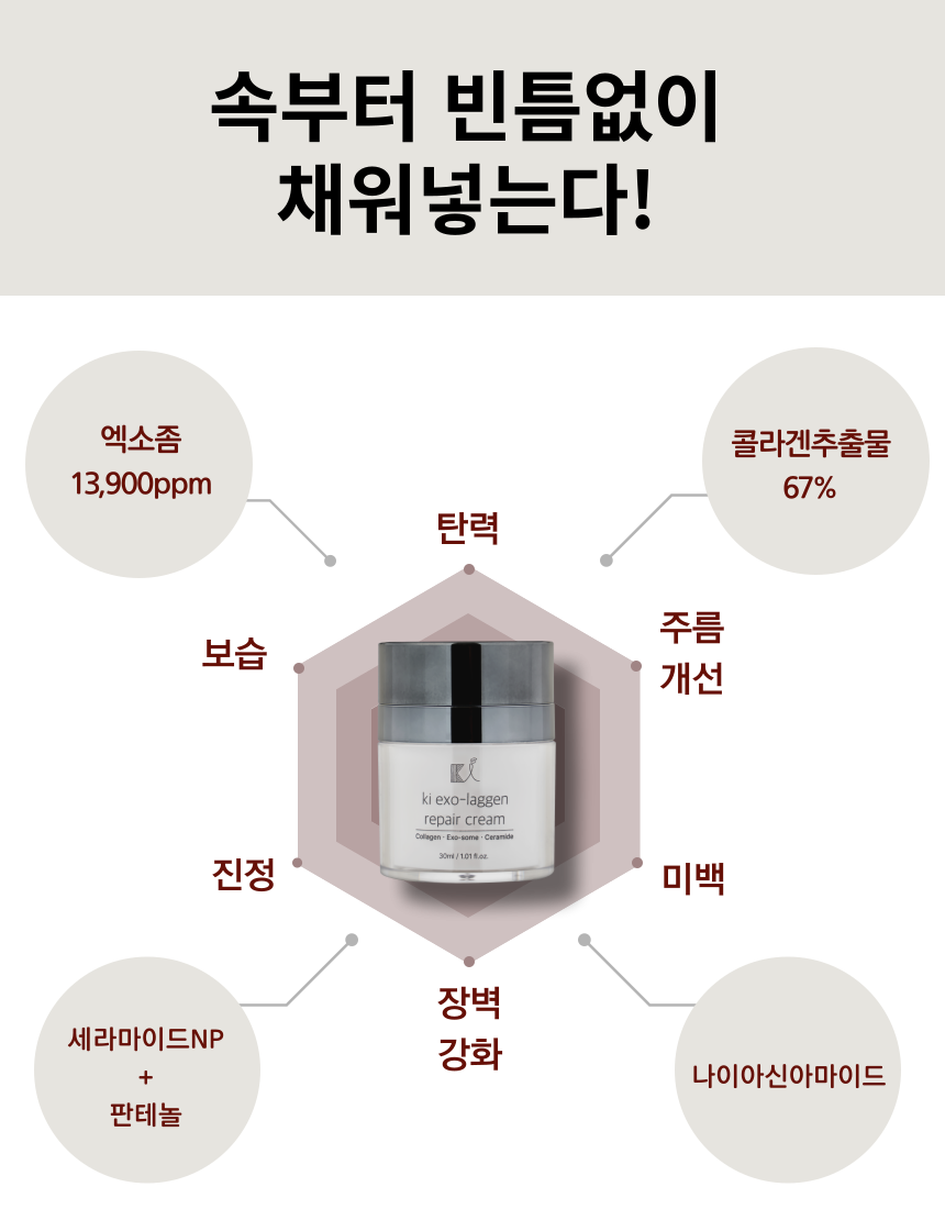 Transform your skincare routine with KI Exo-Laggen Repair Cream, a premium aesthetic-grade cream enriched with ultra-low molecular weight collagen and high-concentration exosomes for rapid absorption and visible results. Unlike conventional creams that use purified water as a base, KI replaces it with a groundbreaking 64% collagen content, ensuring unparalleled nourishment and skin affinity.