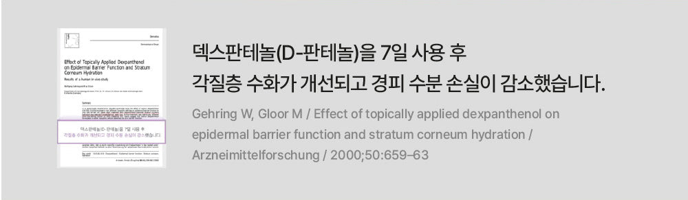 *After using Dexpantenol for 7 days, stratum corneum hydration was improved and transdermal water loss was reduced.