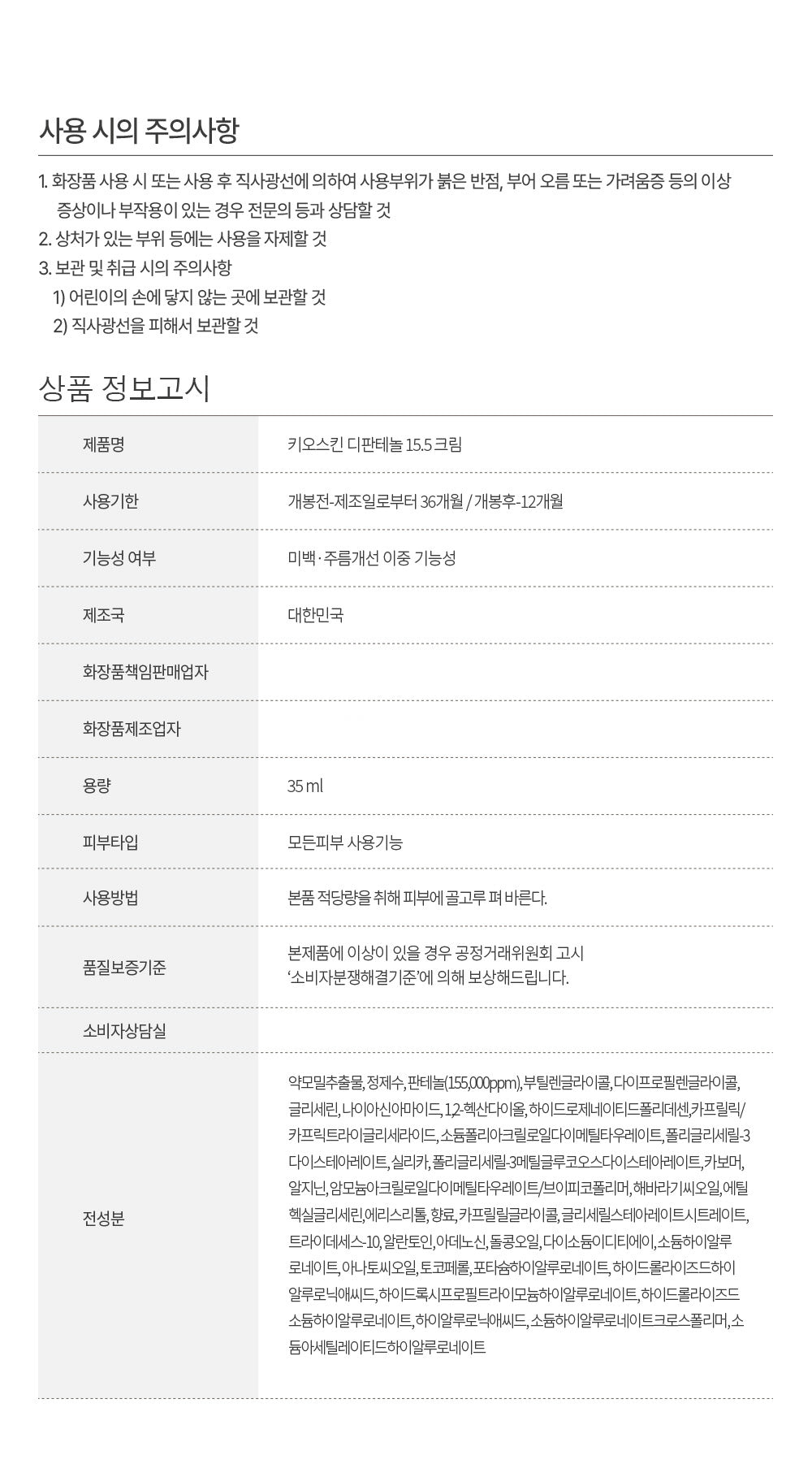KIOSKIN Dipanthenol 15.5 Cream 1 1/Barrier Cream/Moisture Soothing/Hypoallergenic 35ml*2pack