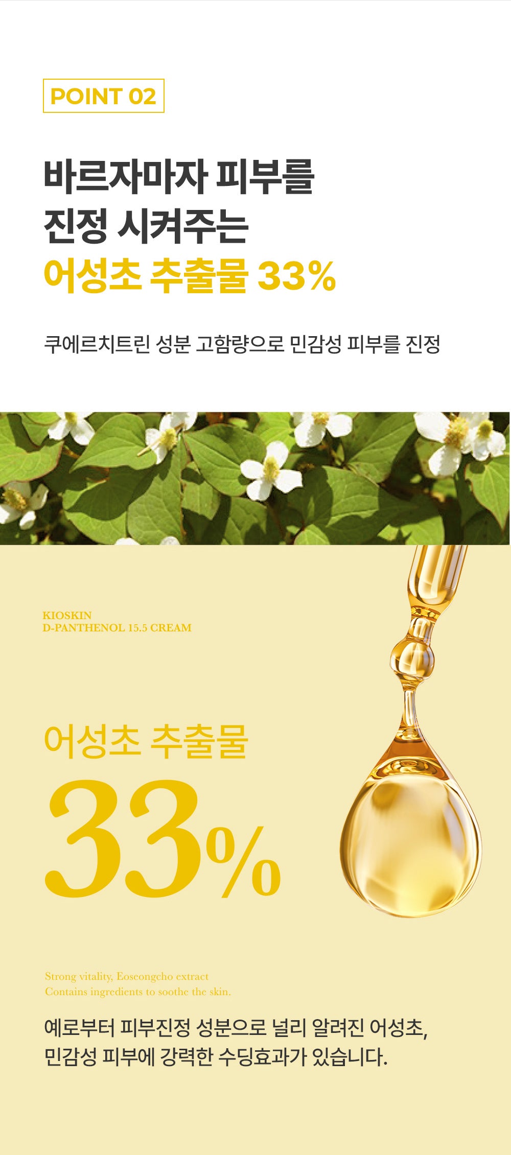 ● 33% Houttuynia cordata extract that soothes the skin as soon as applied