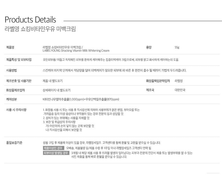 Label Young Shocking Vitamin Milk Whitening Cream 55g