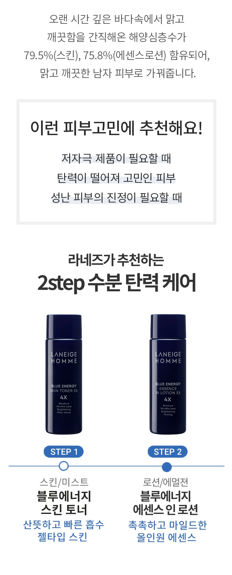 LANEIGE Blue Energy EX Toner 180ml & Lotion 125ml Duo Set – Revitalize Men's Skin with Marine Power