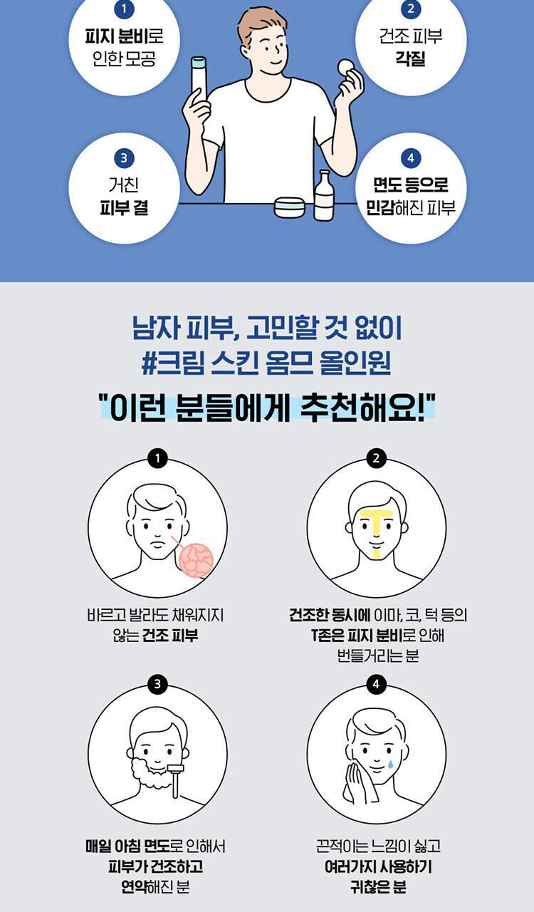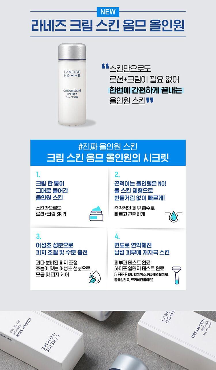 Are you struggling with dry skin, oily skin, sensitive skin after shaving, or excess sebum and enlarged pores? Laneige Homme Cream Skin All-In-One is the ultimate solution tailored specifically for men’s skin, which often faces these common challenges. This all-in-one product offers a quick, simple, and effective skincare routine that balances moisture and sebum levels for healthier, more refined skin.