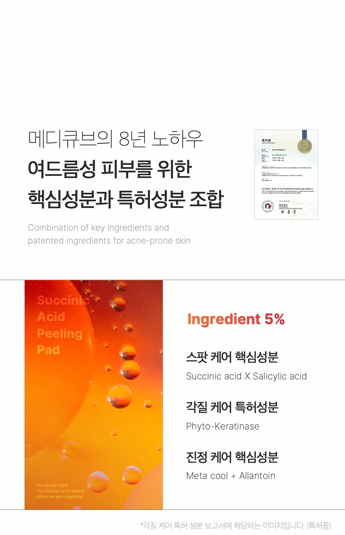 The combination of core and patented ingredients ensures targeted action against acne. With 5% of specially selected ingredients for spot care, dead skin care, and soothing care, our pad works to improve the skin’s overall environment by eliminating waste, reducing sebum, and enhancing skin texture.