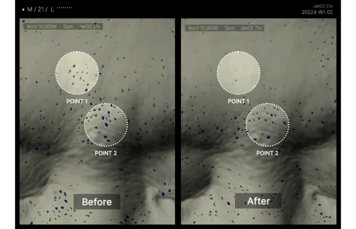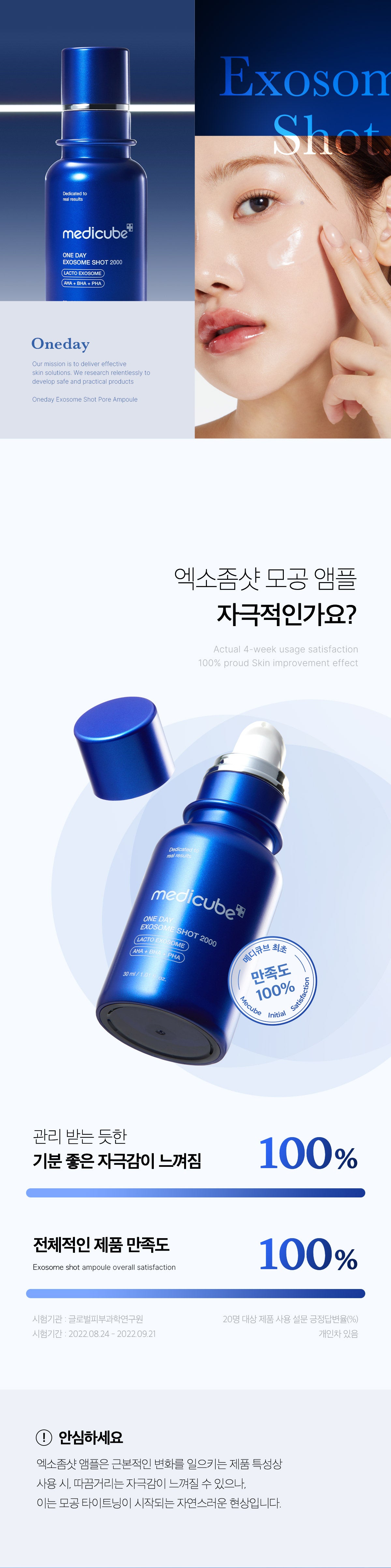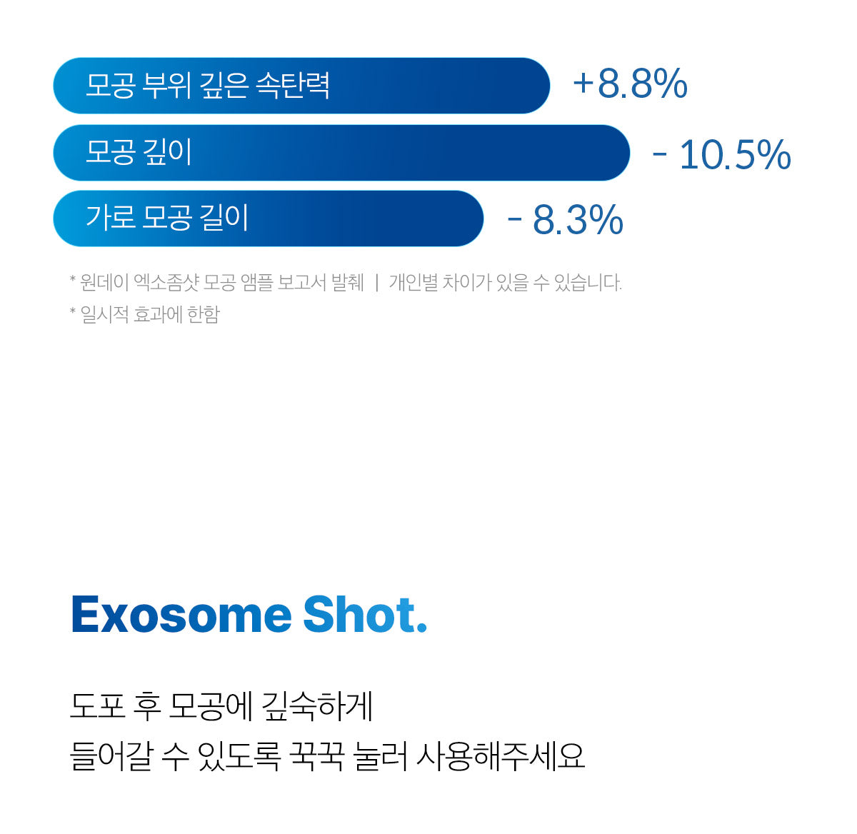 After just one use, the Exosome Shot improves pore density, volume, depth, length, and elasticity. Users may feel a mild tingling sensation, signaling the start of the pore-tightening process.