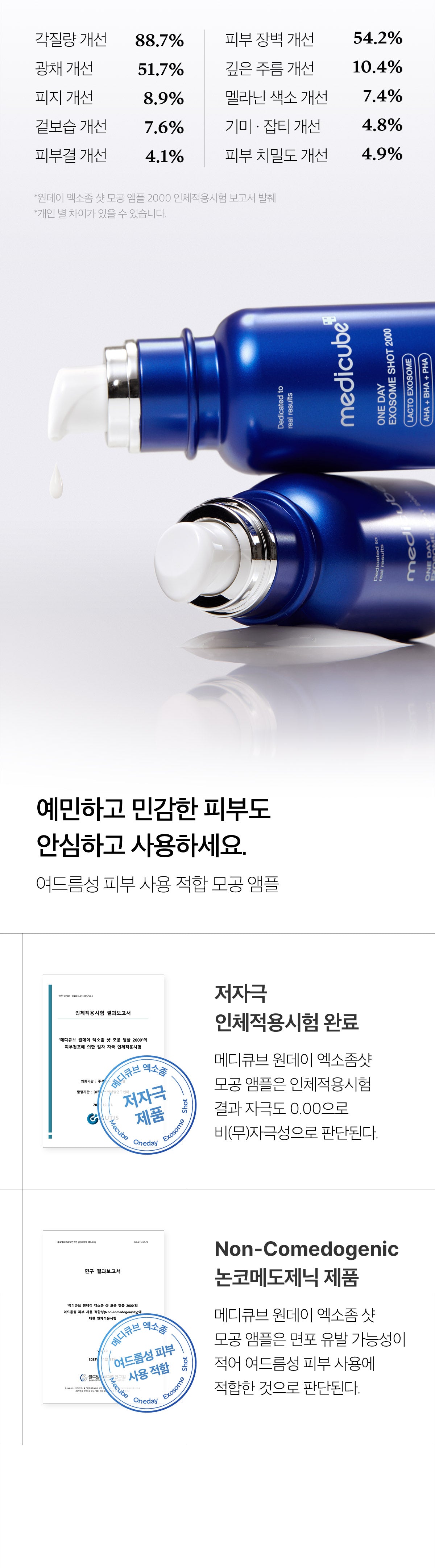 The Medicube Exosome Shot Ampoule has completed a low-irritation human application test, ensuring it’s suitable for all skin types, including sensitive skin. Its non-comedogenic formula prevents clogged pores for a clearer complexion.