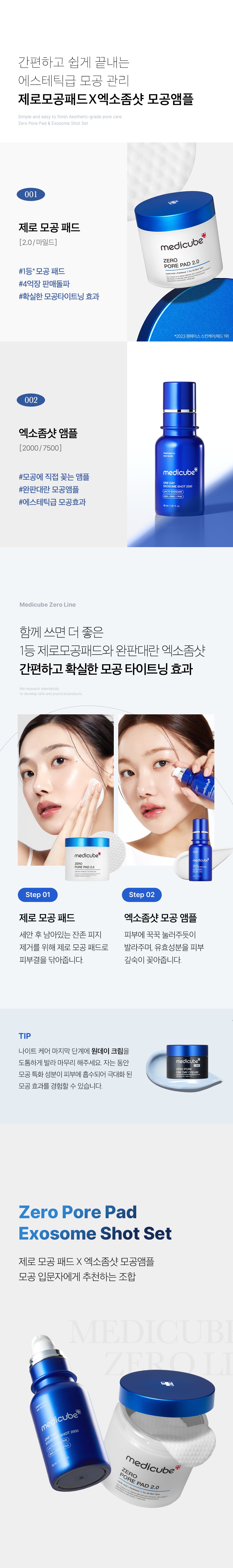 medicube Zero Pore Pad 2.0 155g 70sheets+One Day Exosome Shot 2000 30ml