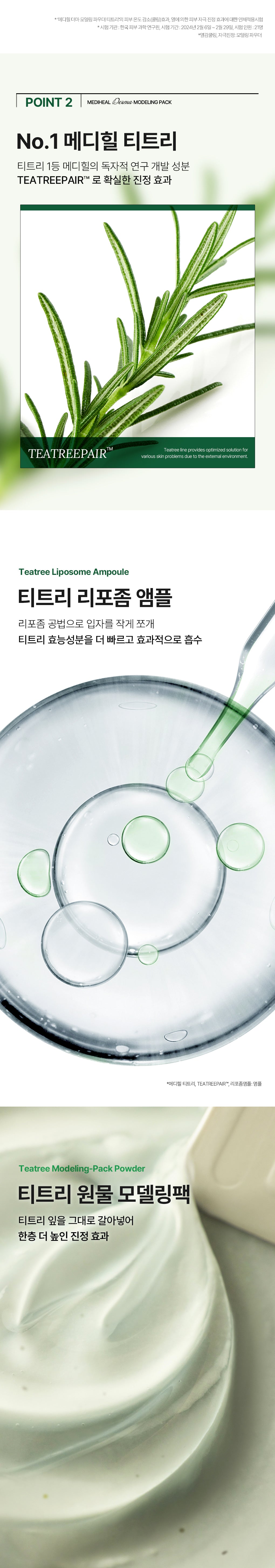 - TEATREEPAIR™: MEDIHEAL’s unique tea tree ingredient provides a clear soothing effect. The liposome method enhances the absorption and effectiveness of tea tree ingredients by breaking down particles efficiently.