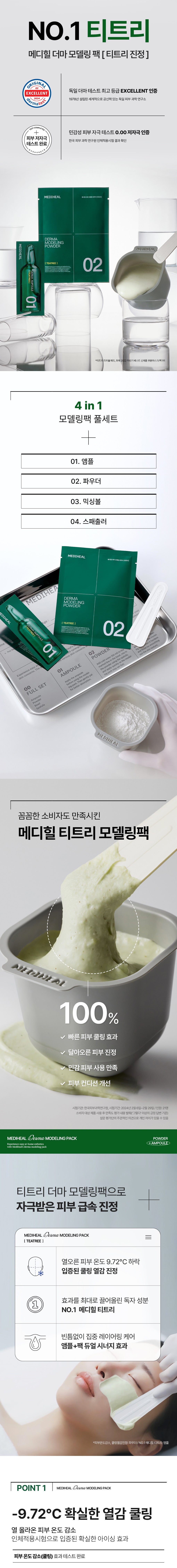 Experience the cooling effect of MEDIHEAL Derma Modeling Powder, scientifically proven to reduce skin temperature and provide soothing relief. This product offers concentrated care from the roots with quick absorption of high-efficiency ampoule, thanks to Tea tree liposome micro-particles.