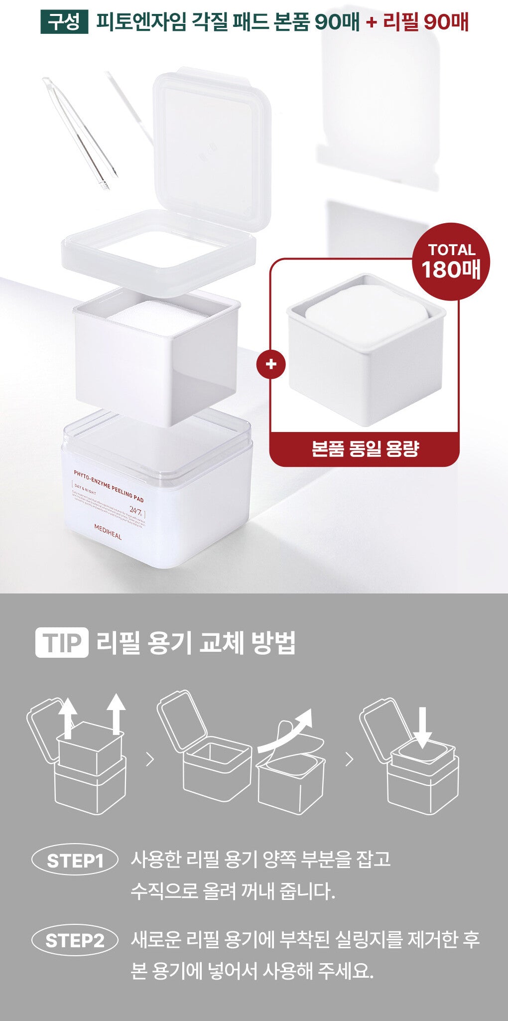 MEDIHEAL Limited Edition Phyto Enzyme Keratin Pads 90sheets+Rrefills 90sheets