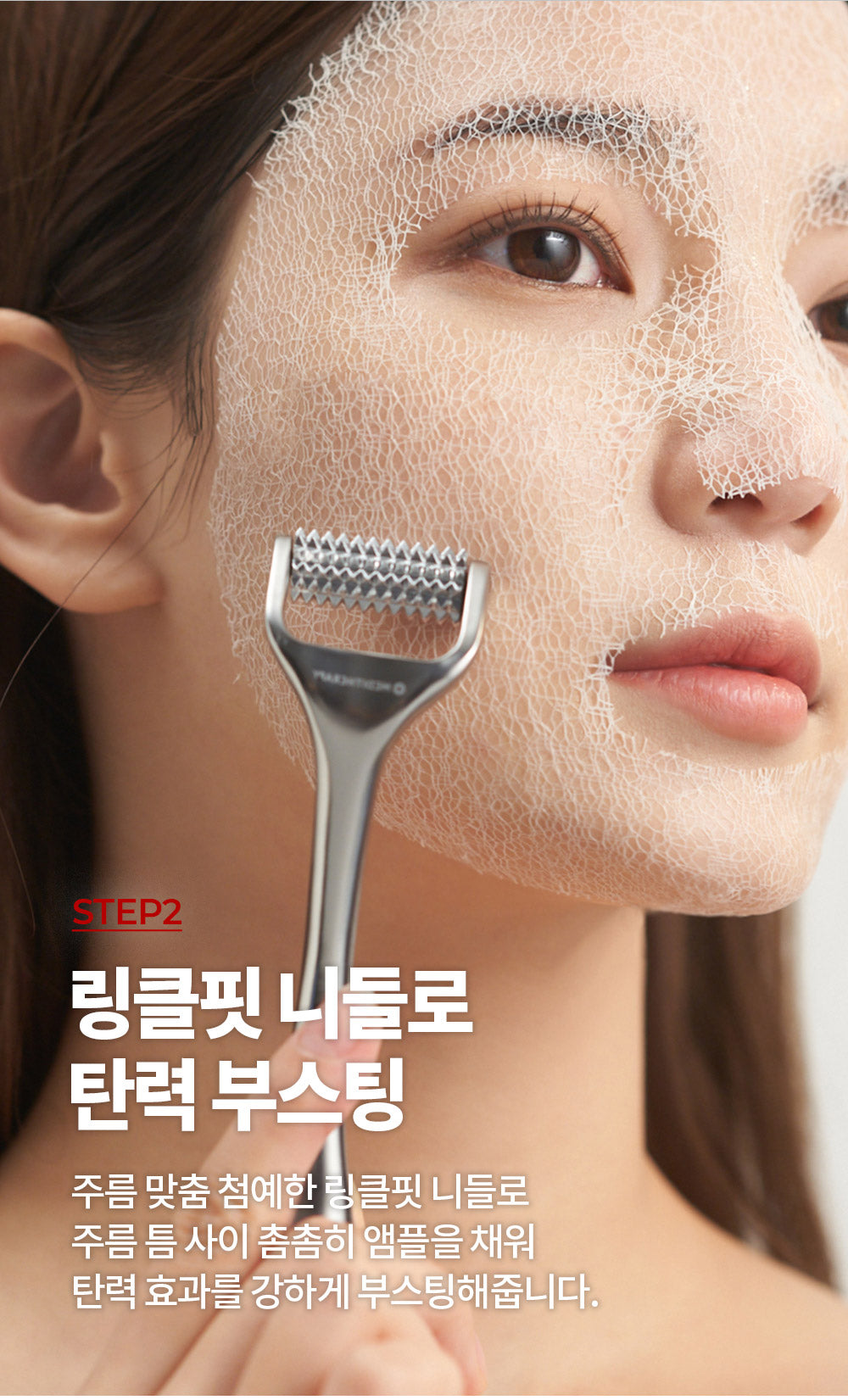 The targeted Wrinkle Fit Needle precisely fills wrinkles with ampoule, boosting elasticity effectively.