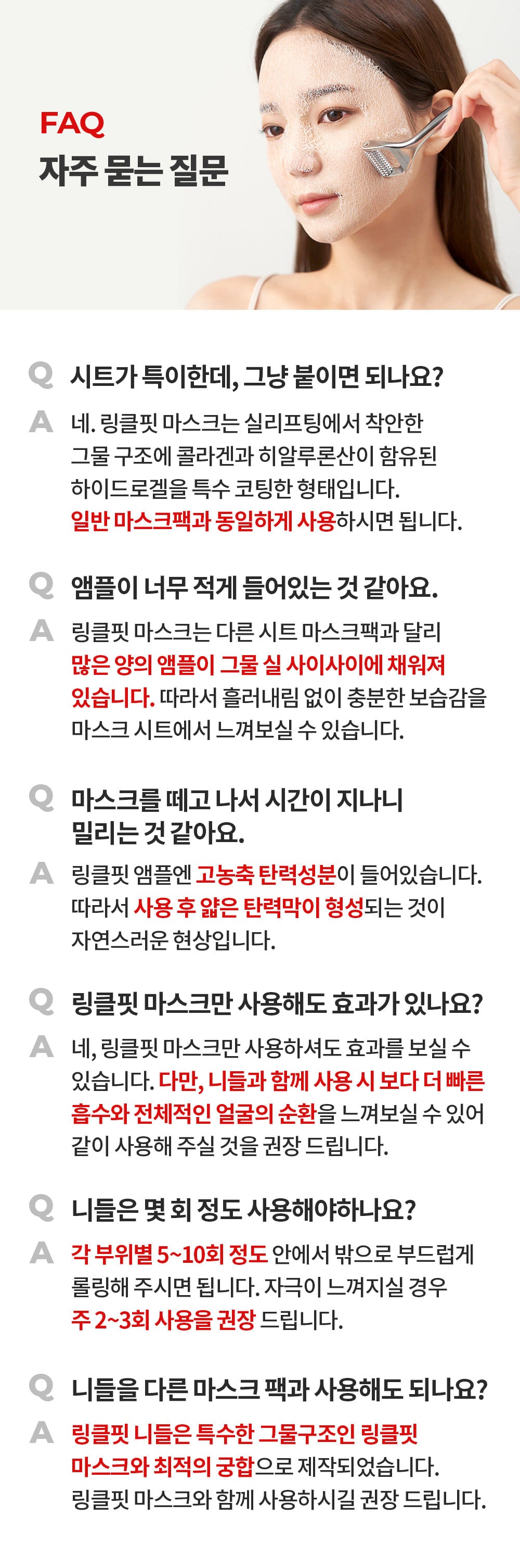 - Facial Wrinkle Massage: After applying the mask, roll the needle evenly over the face to massage the entire face.