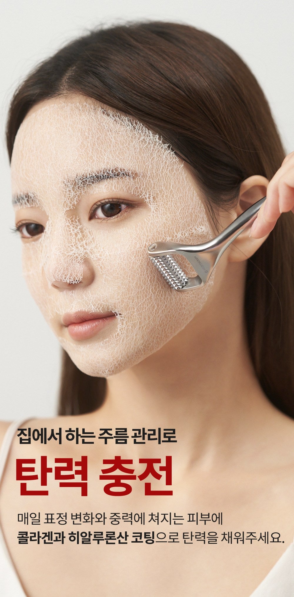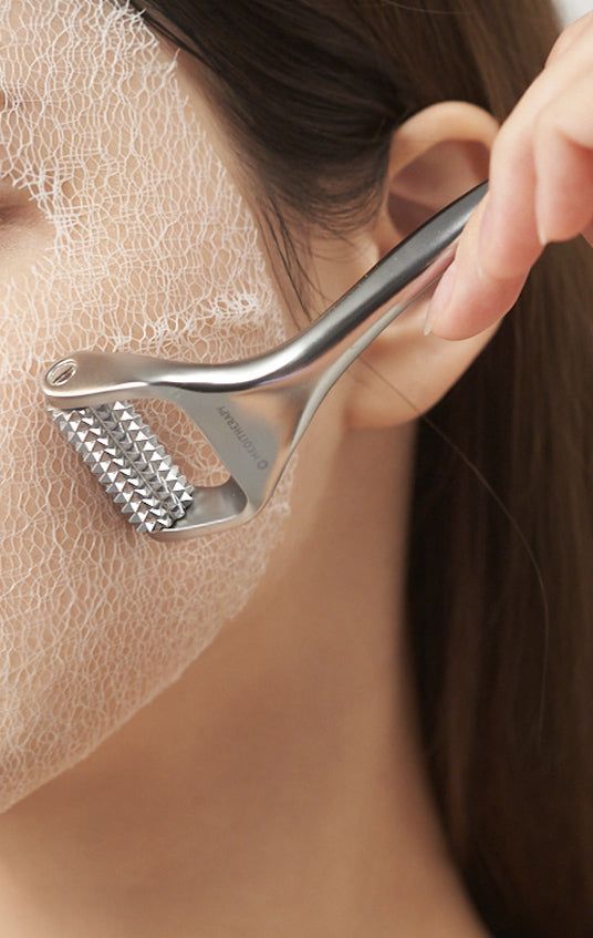 Roll the needles over the mask The mask is coated with collagen and hyaluronic acid to supply moisture and reduce wrinkles.