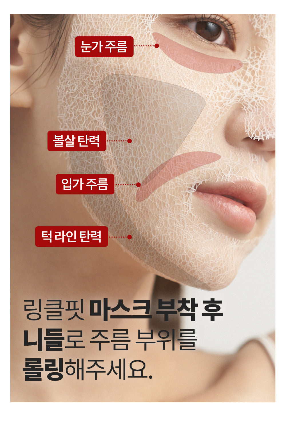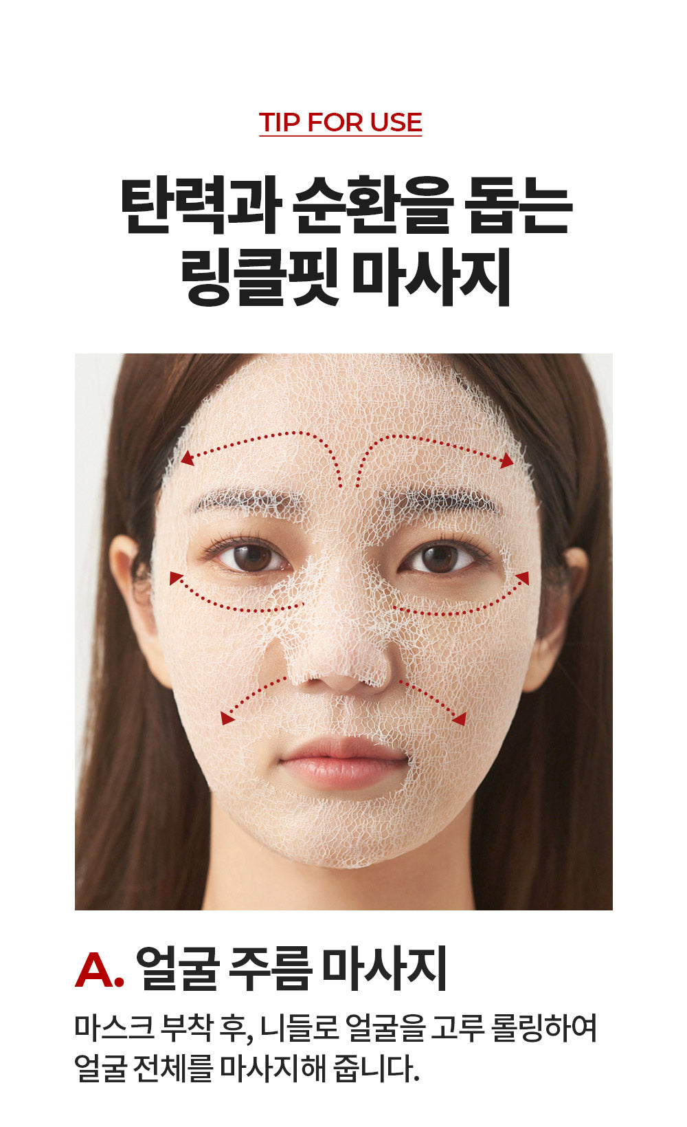 - Facial Wrinkle Massage: After applying the mask, roll the needle evenly over the face to massage the entire face.