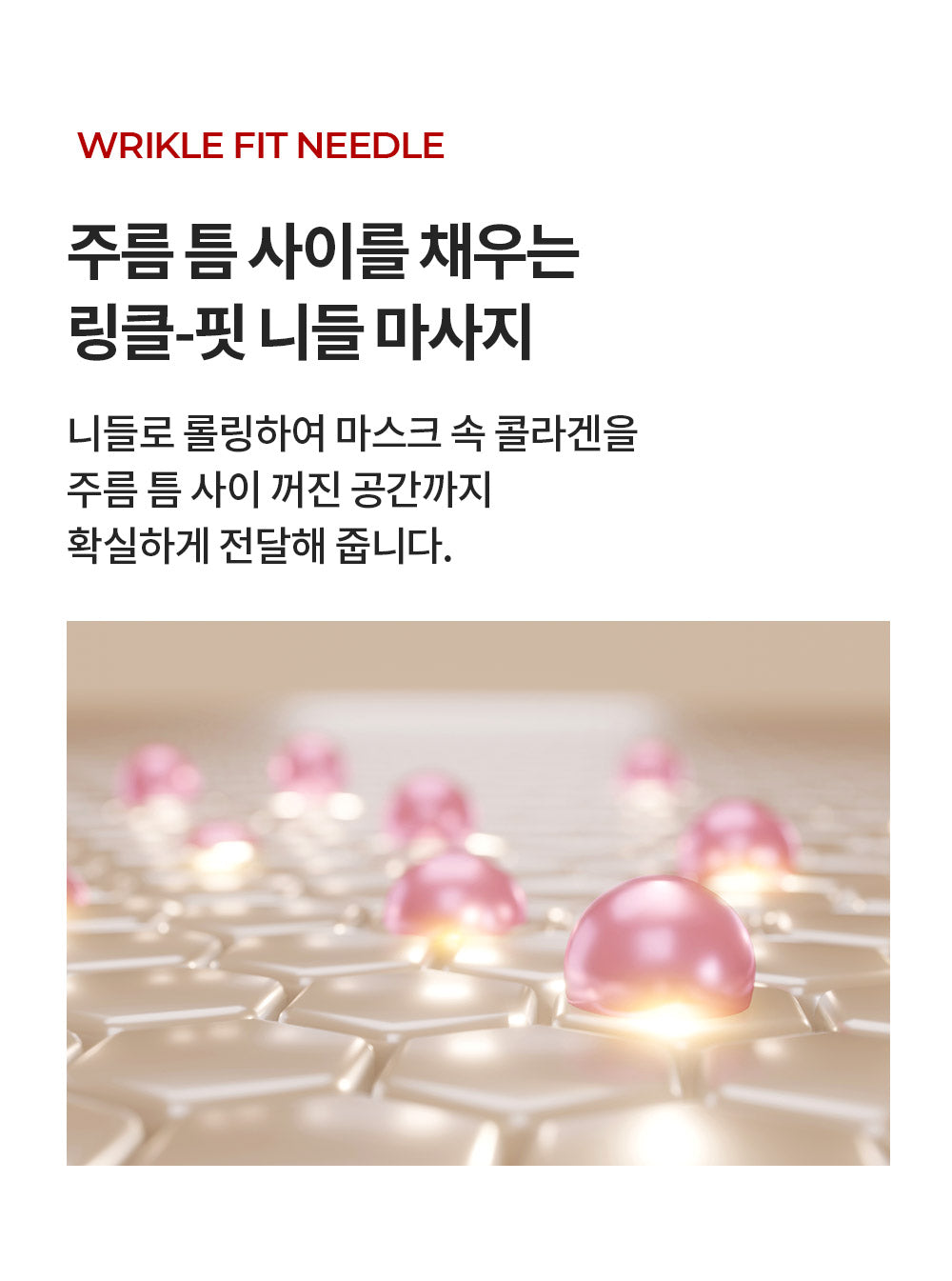 The targeted Wrinkle Fit Needle precisely fills wrinkles with ampoule, boosting elasticity effectively.