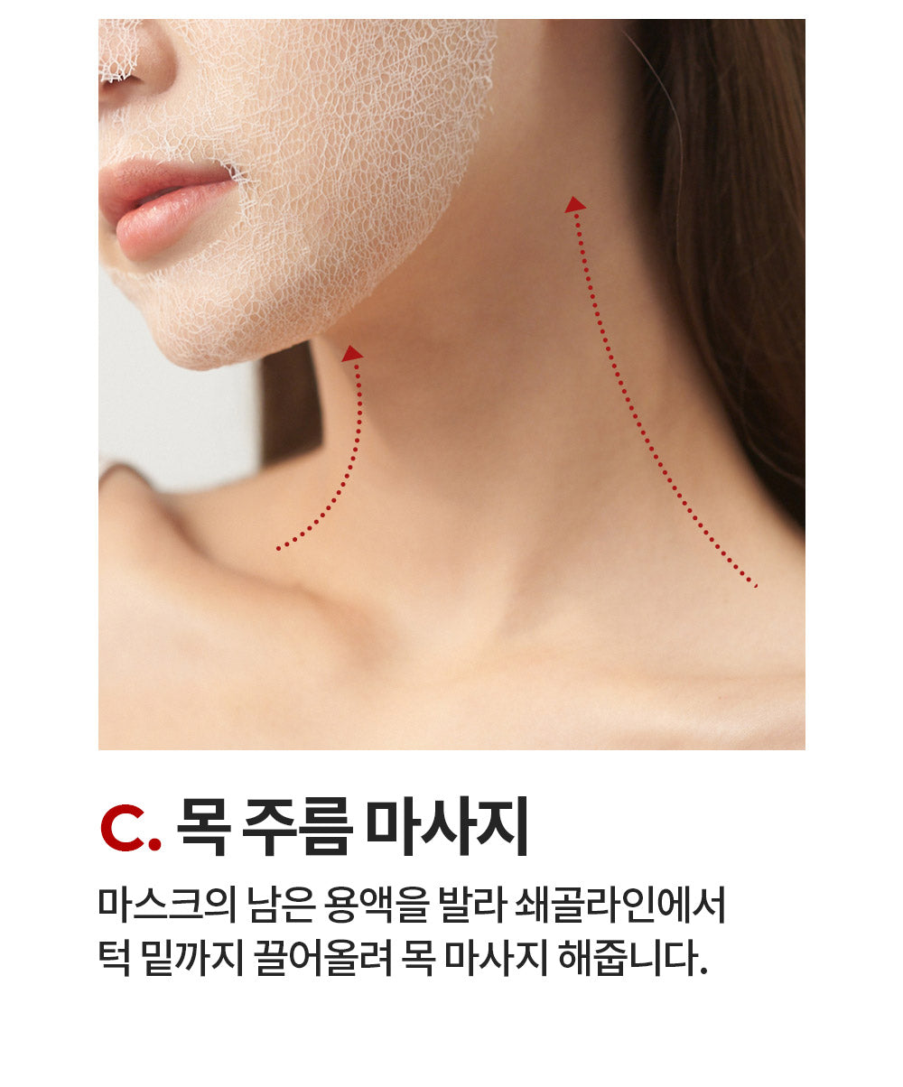 - Neck Wrinkle Massage: Apply the remaining essence from the mask to the neck and roll from the collarbone to the chin to massage the neck.