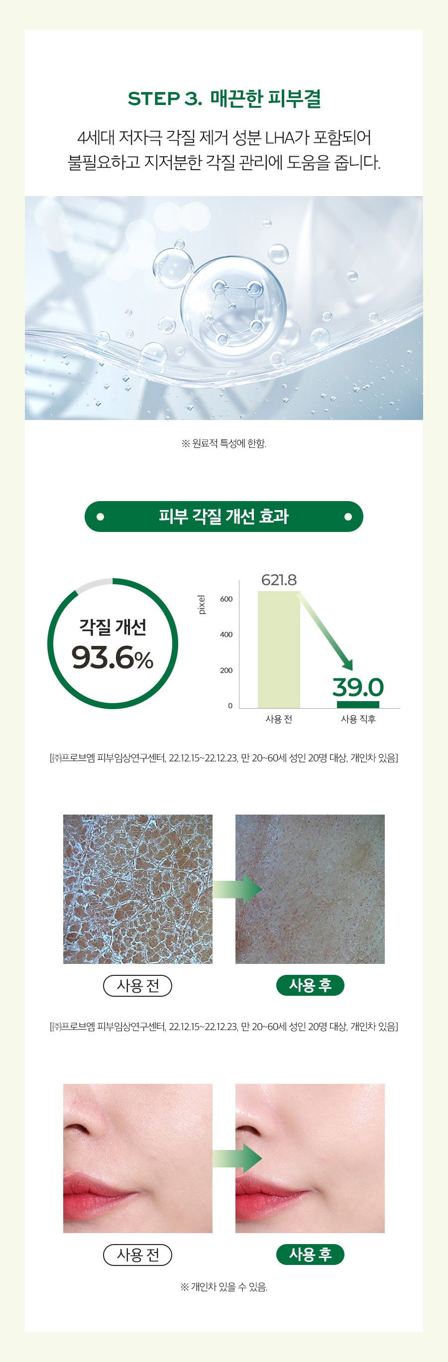 - Smooth Skin Texture: LHA improves skin texture by 93.6%, managing dead skin cells delicately.