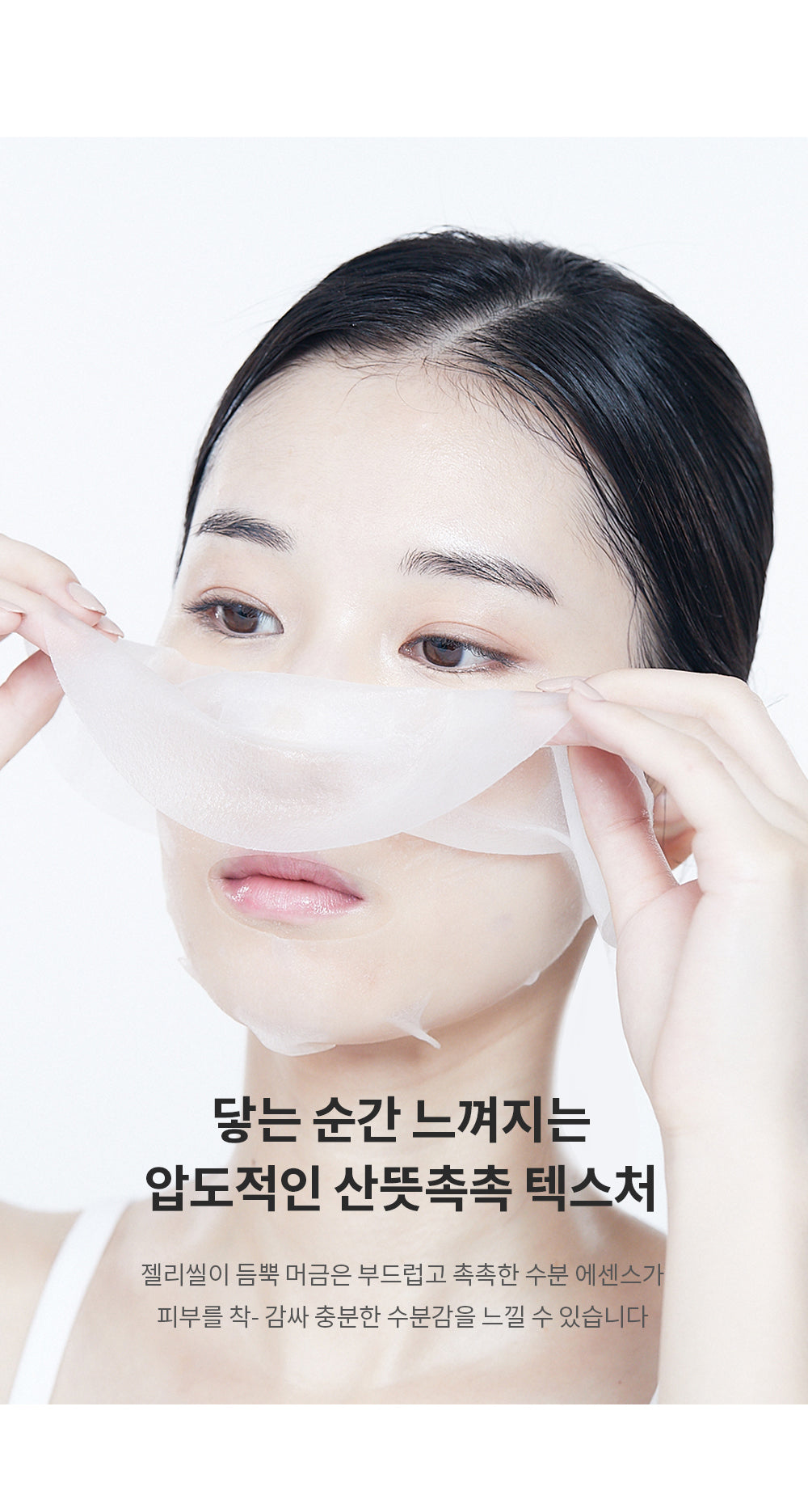When our Jelly Sheet meets the essence, it swells up, transforming into a gel-rich sheet. This unique mechanism ensures a burst of moisture, delivering a hydrating experience like no other.
