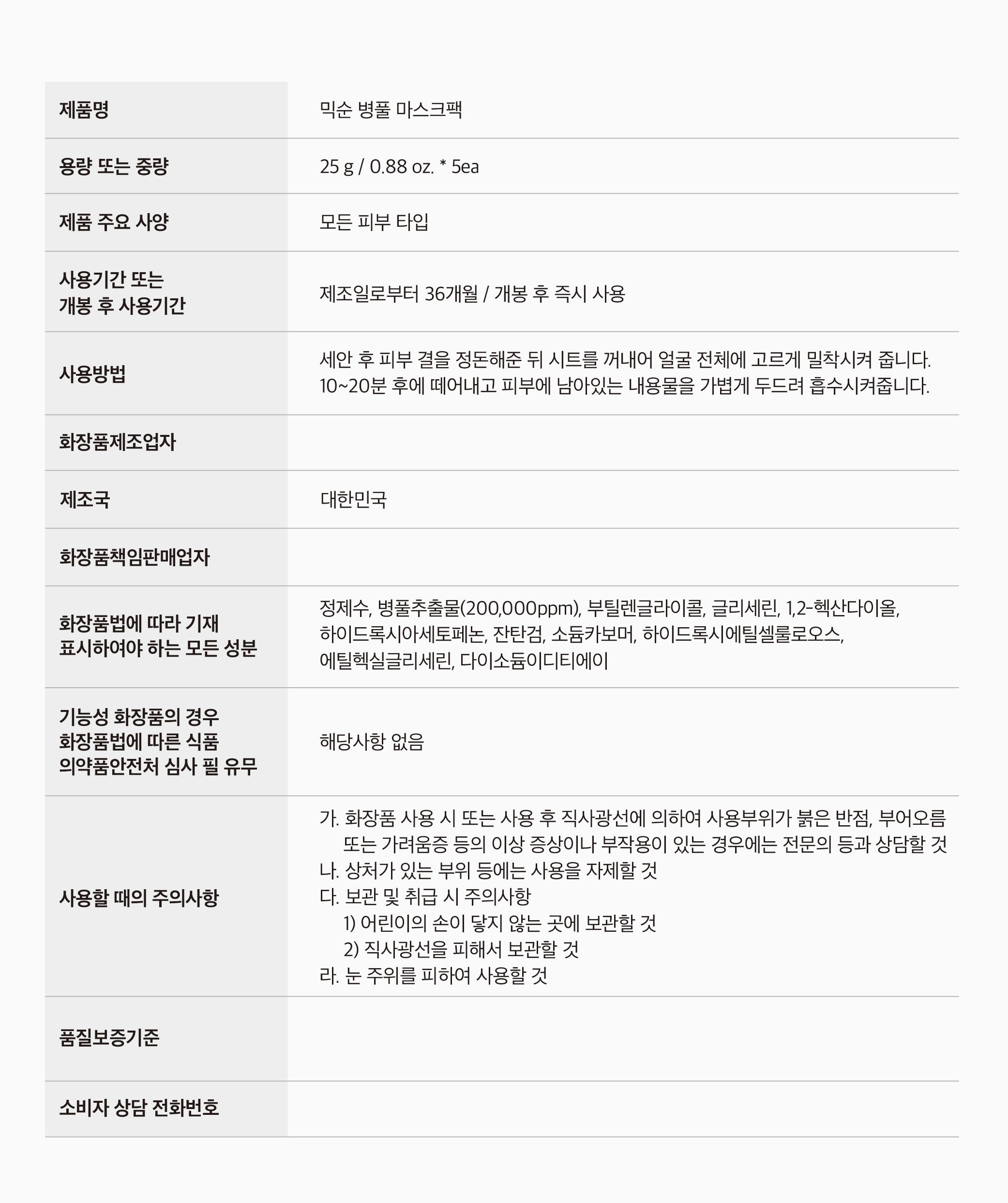 mixsoon Centella Asiatica Soothing Mask Pack 5sheets*25g
